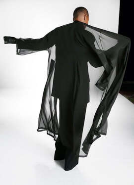 AFMETINGEN: lengte 120 cm, breedte 66 cm, taille 66 cm, schouderbreedte 60 cm, mouwlengte 56 cm