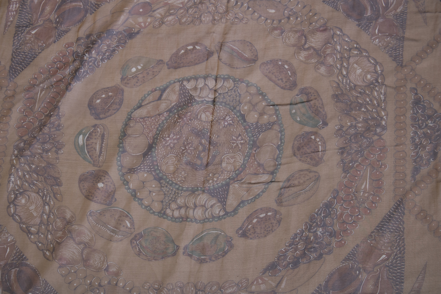 • Hermes, Rocaille zijden sjaal met schelpenprint. Het artikel heeft wat lichte vlekken en verkeert over het algemeen in goede staat.