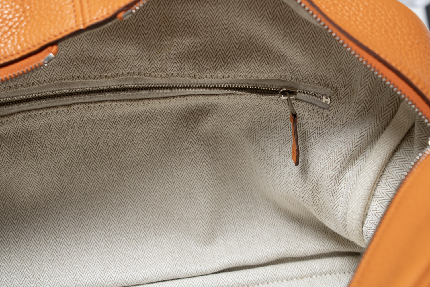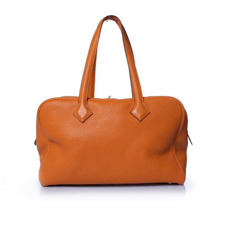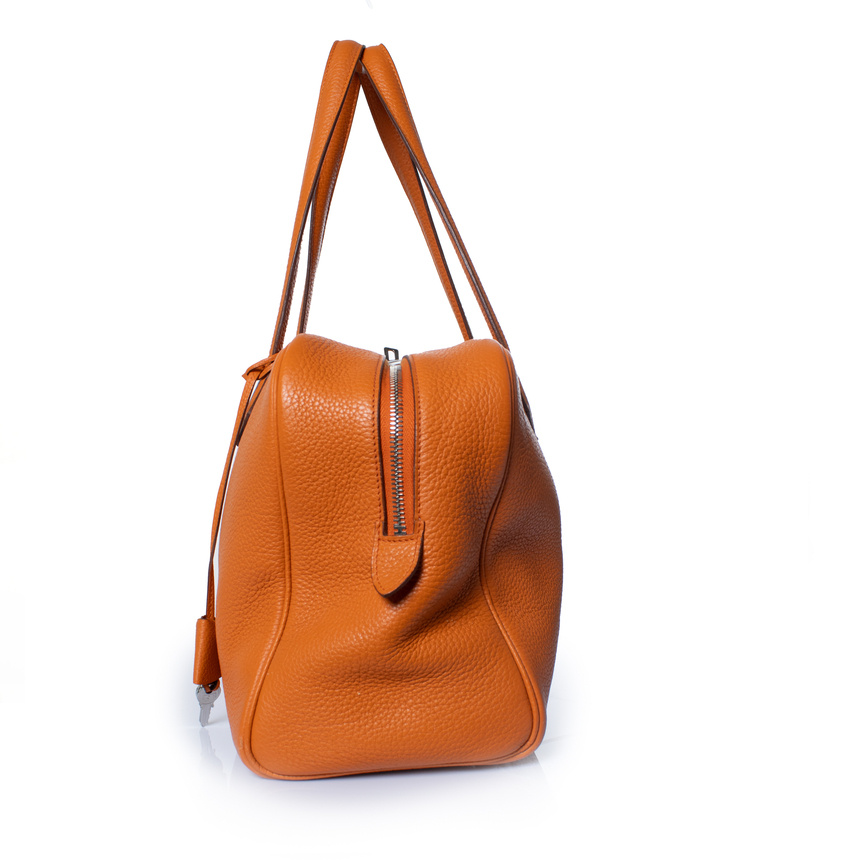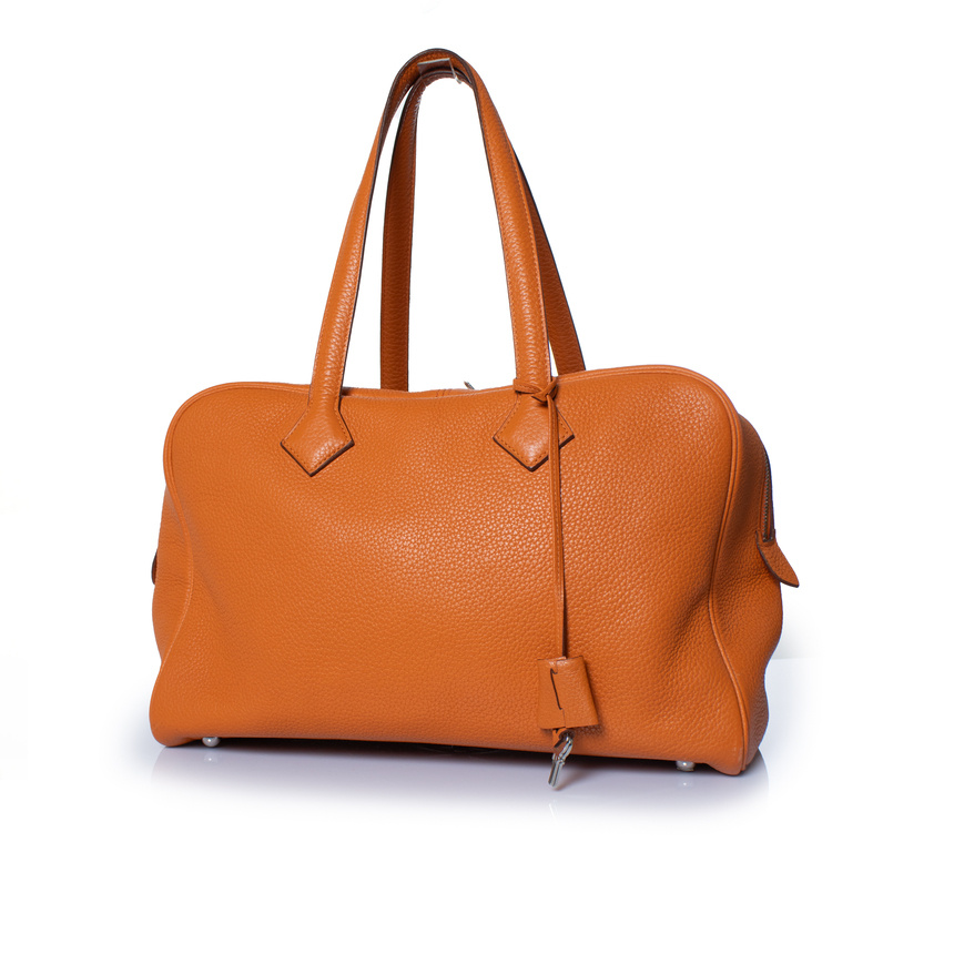 • Hermes, Victoria handtas in oranje togo leer met slot en zilveren sleutel. Wordt geleverd met boekje, regenhoes en twee stofzakken. Het artikel verkeert in goede staat, lichte slijtage aan de hoeken.
