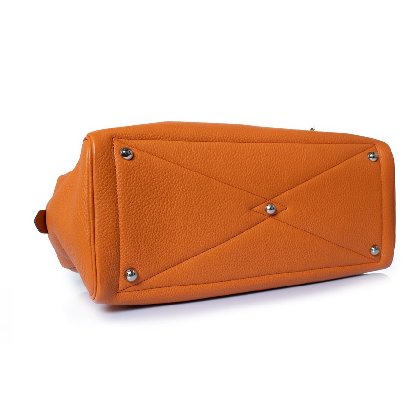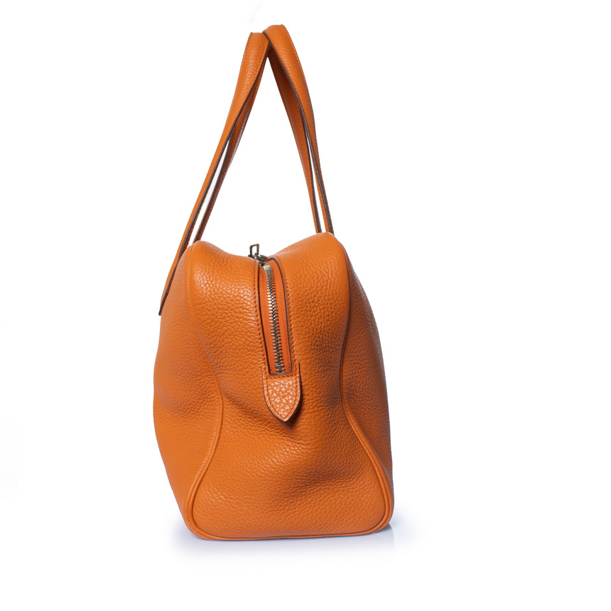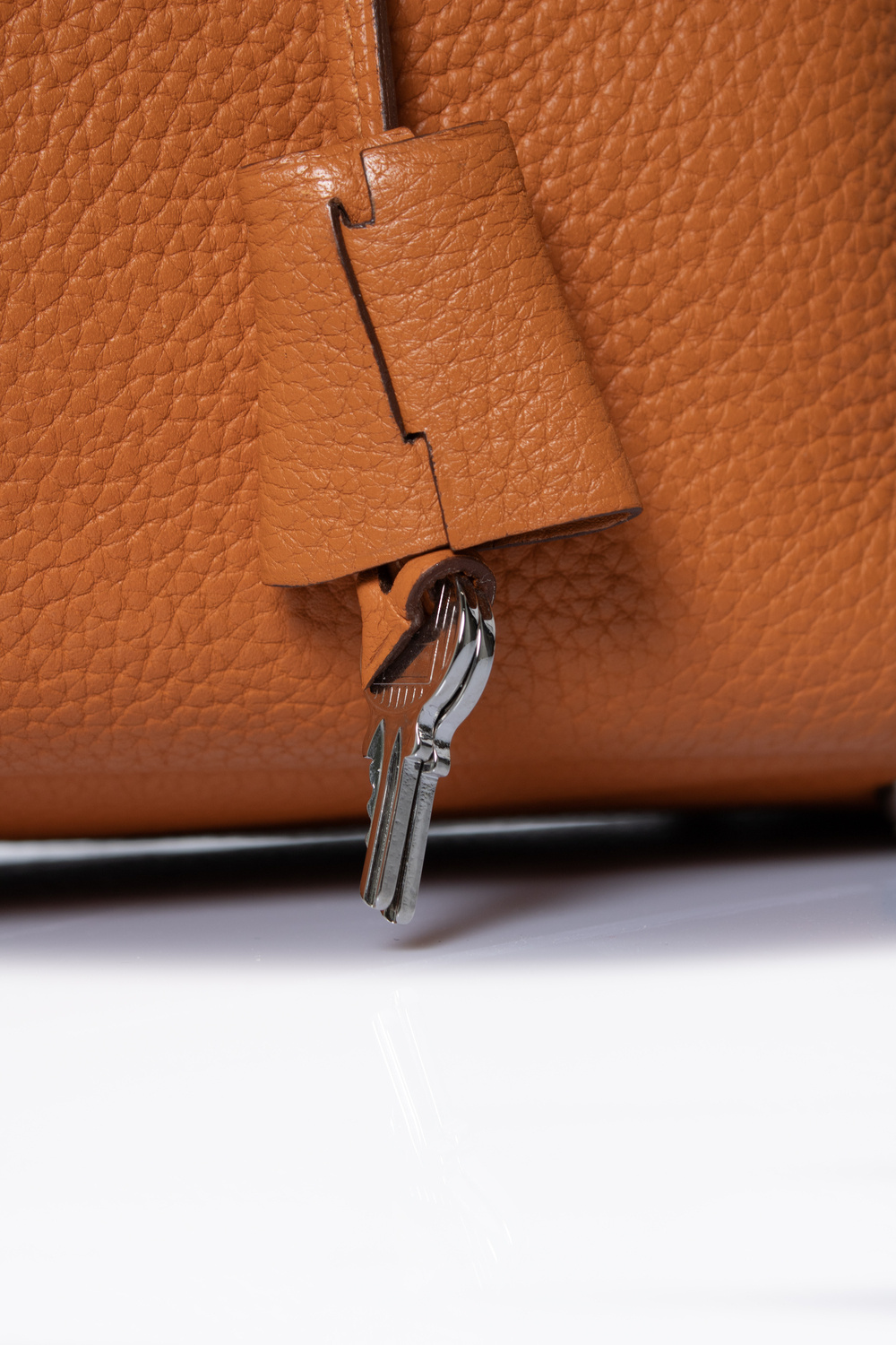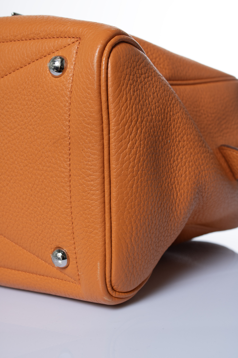 • Hermes, Victoria handtas in oranje togo leer met slot en zilveren sleutel. Wordt geleverd met boekje, regenhoes en twee stofzakken. Het artikel verkeert in goede staat, lichte slijtage aan de hoeken.