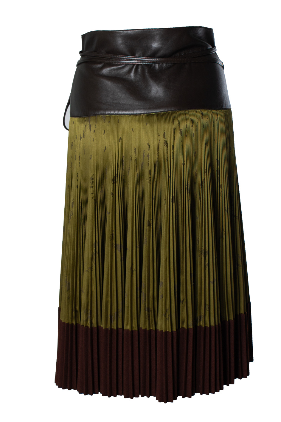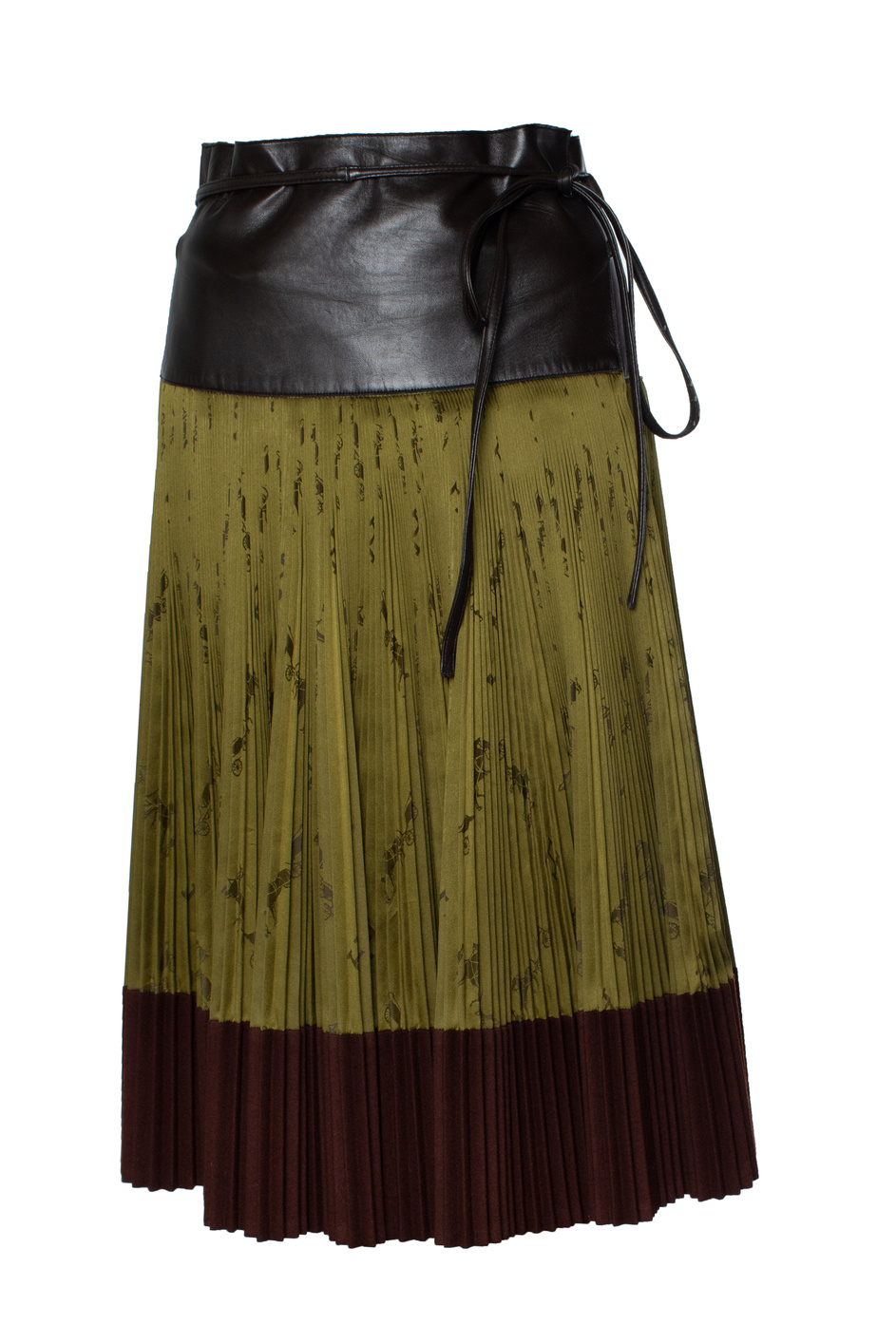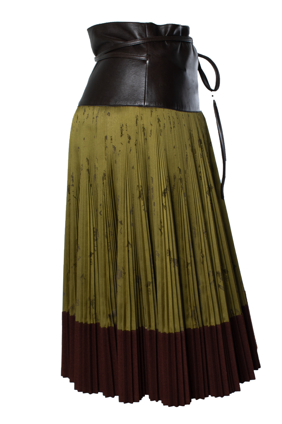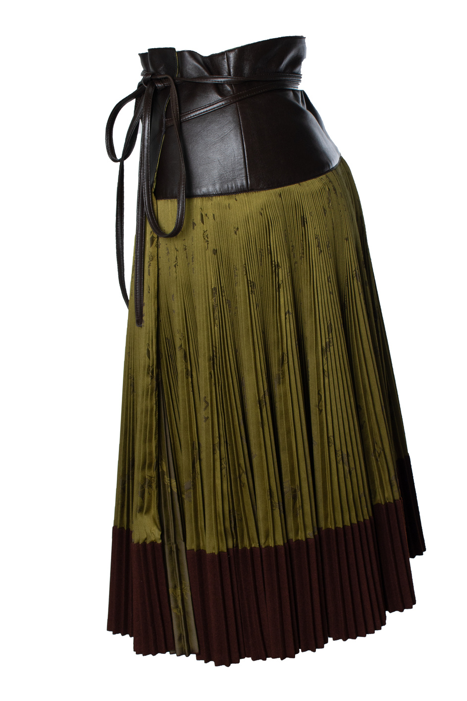 • Hermes, vintage geplooide knielange rok met zijde en leer. Het artikel verkeert in zeer goede staat.
