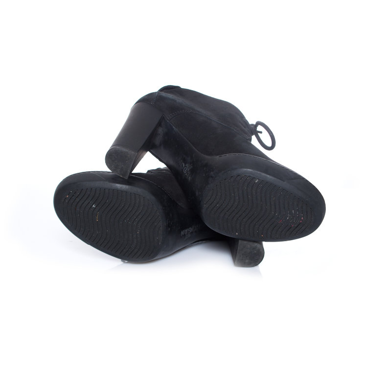 Valentino Garavani, Rockstud leren enkellaarsjes in metallic leer. Het artikel is nieuw met prijskaartje maar heeft een beschadiging op de rechterneus en een kleine verkleuring.