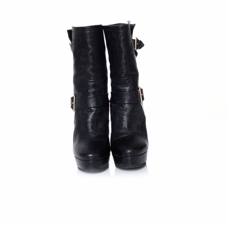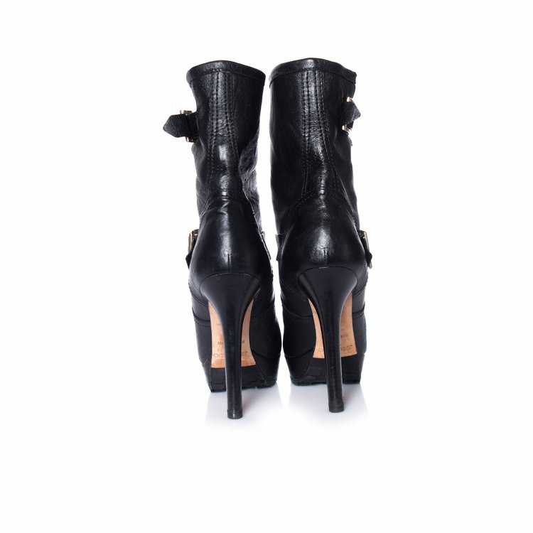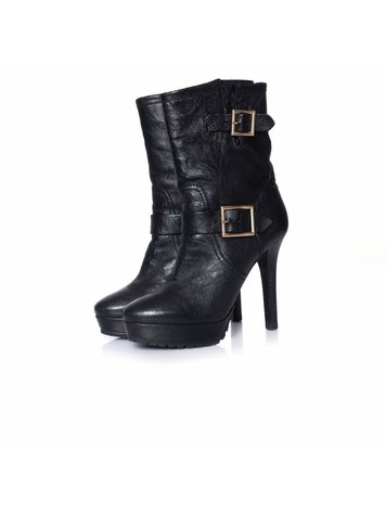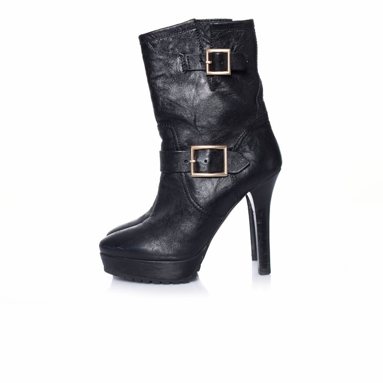 Jimmy Choo, Zwart leren laarsjes met gouden gespen.