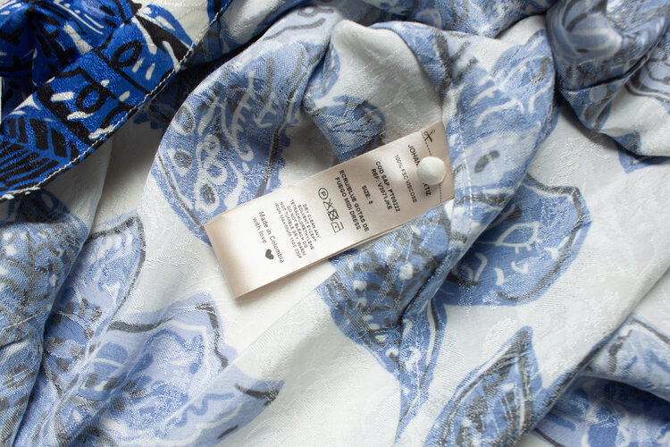 • Johanna Ortiz, Blue goats de Fuego midi-jurk. Het artikel heeft stretch plekken op de achterkant op het onderste gedeelte verder in goede staat.