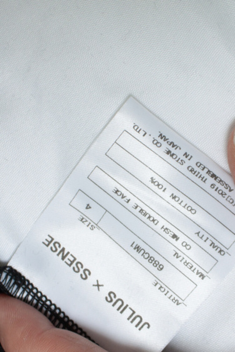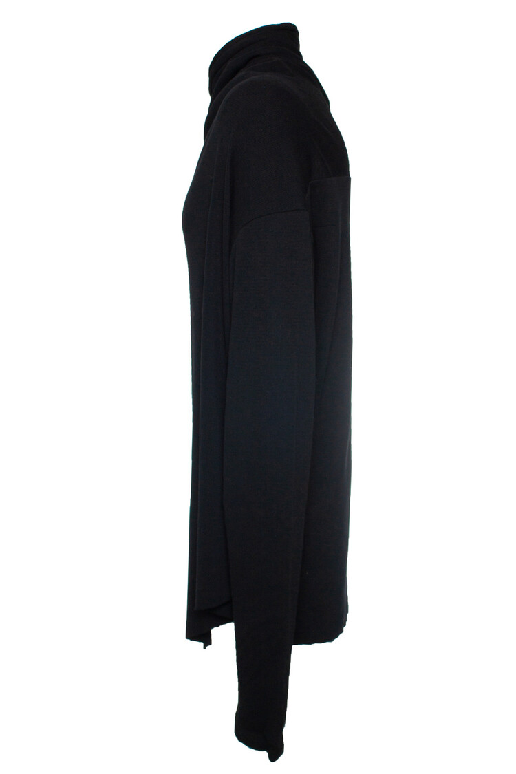 • Julius x ssense, asymmetrische zwarte coltrui. Het artikel verkeert in zeer goede staat.