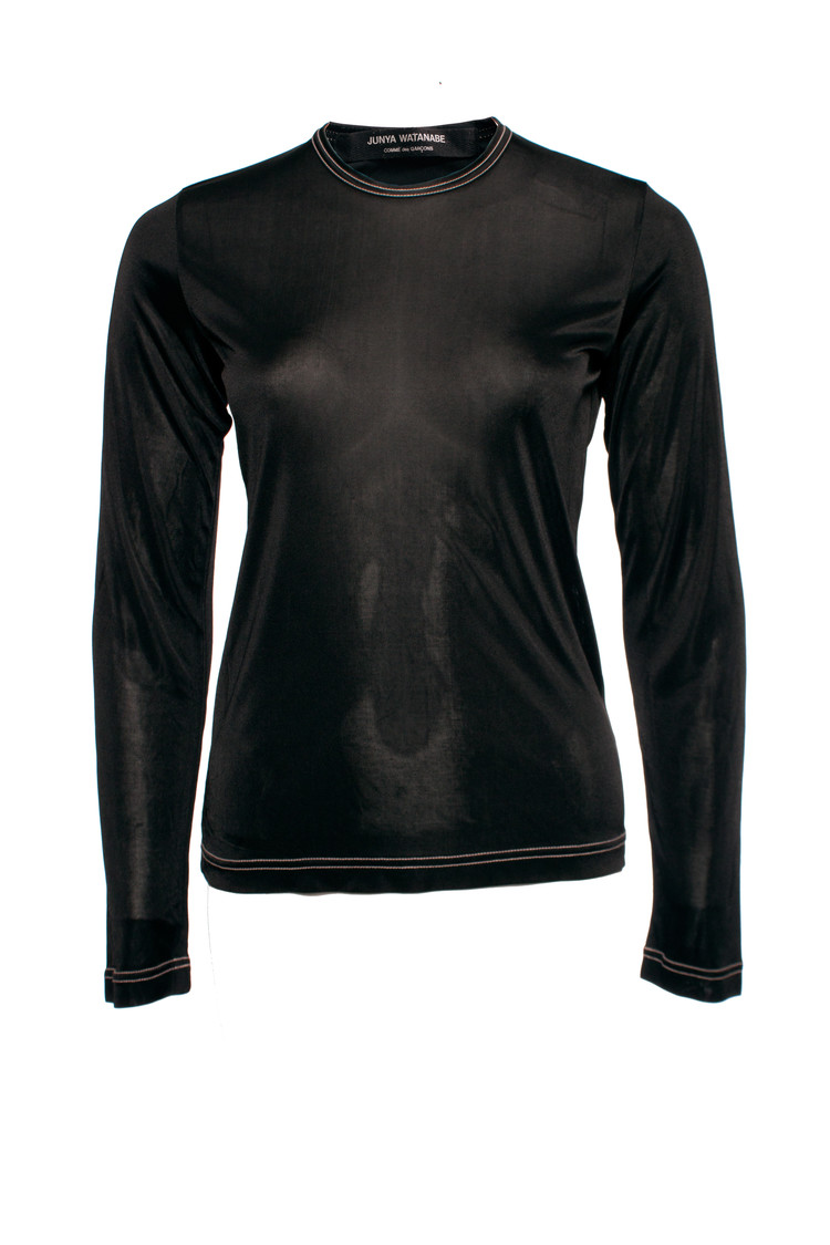 Junya Watanabe/Comme des garçons, Zwarte semi-transparante glanzende top in maat S.