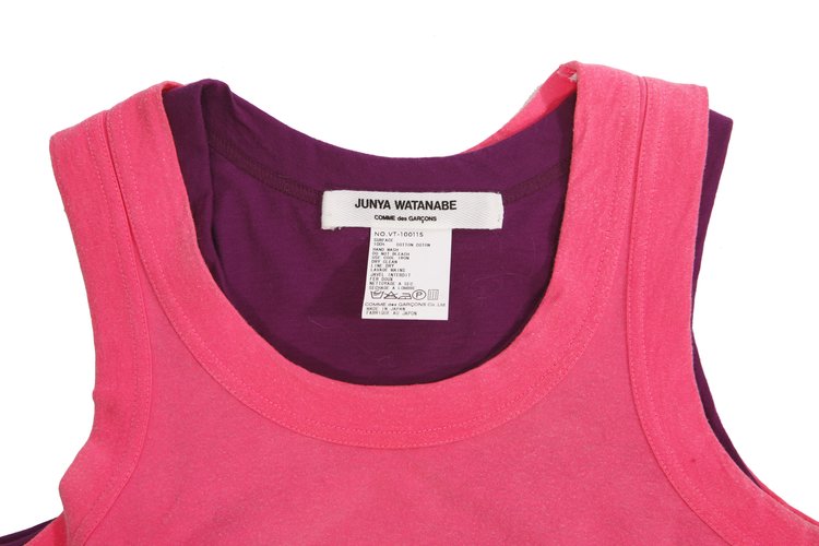 • Junya Watanabe, dubbele roze/paarse geknoopte tanktop in maat S. Dit product verkeert in een goede staat en kan ook los van elkaar worden gedragen.