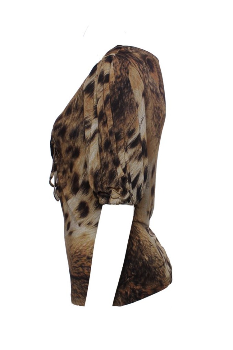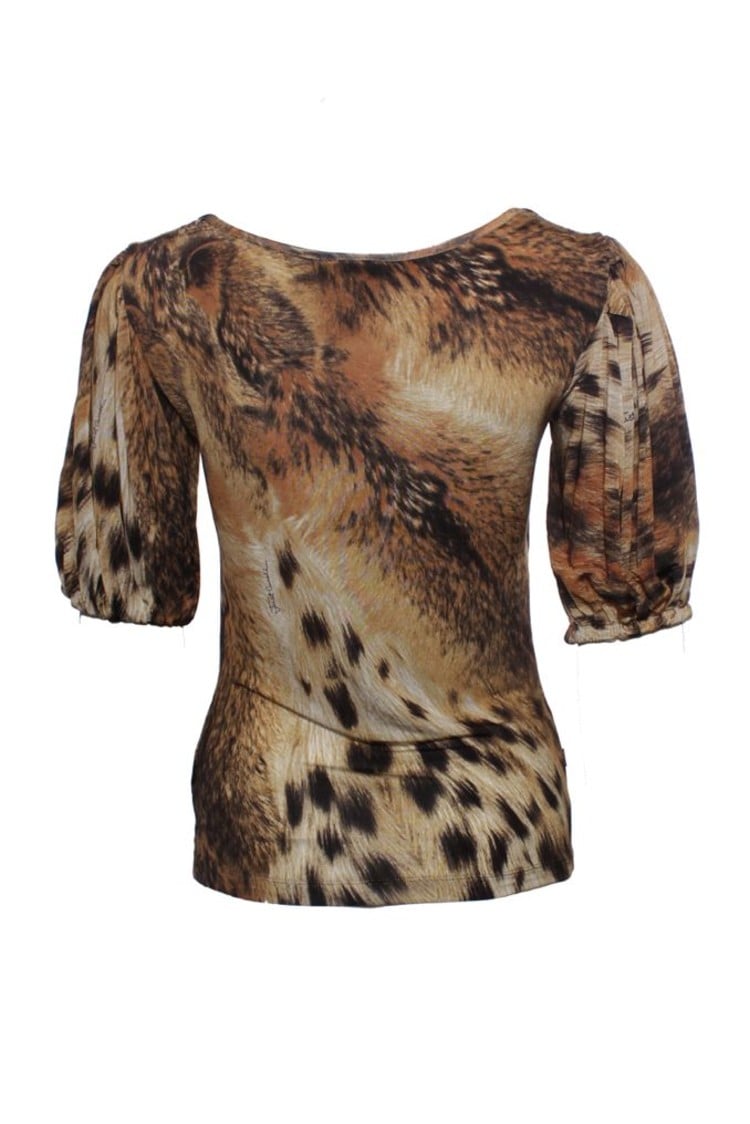 Just Cavalli, bruine dierenprint top met 3/4 pofmouw. Het product is gebruikt maar in zeer goede staat.