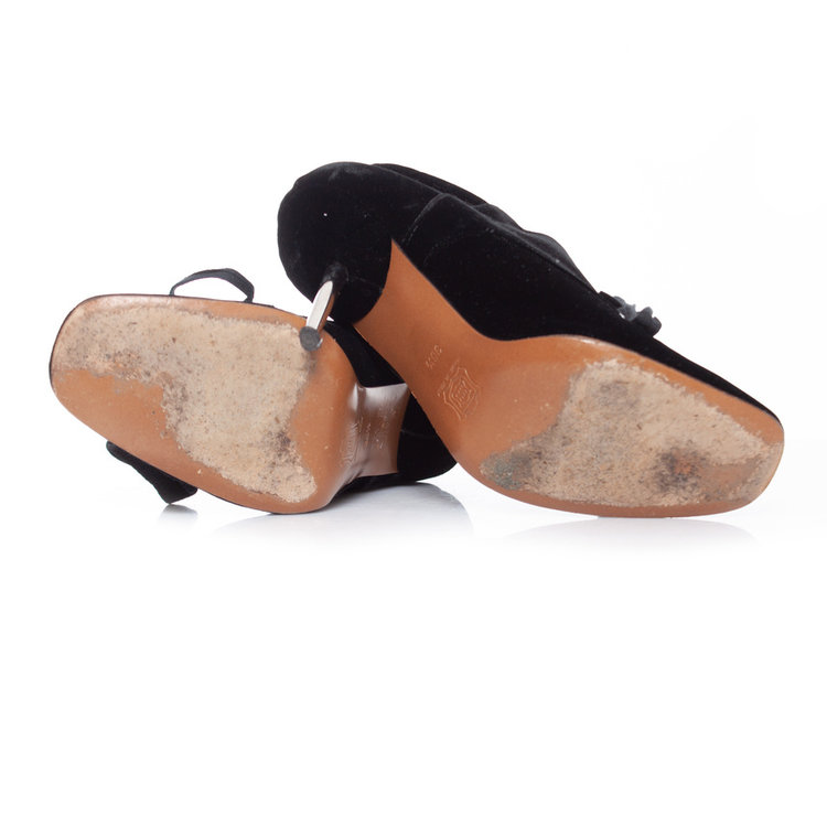 • Lanvin, Zwart fluwelen veter enkellaarzen met metalen hak. Het item is weinig gedragen en verkeert in goede staat.