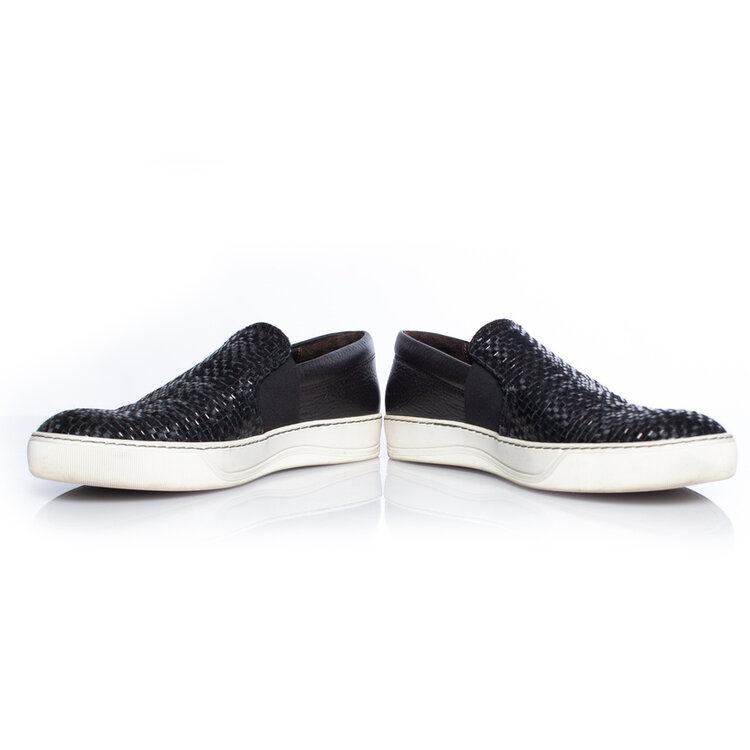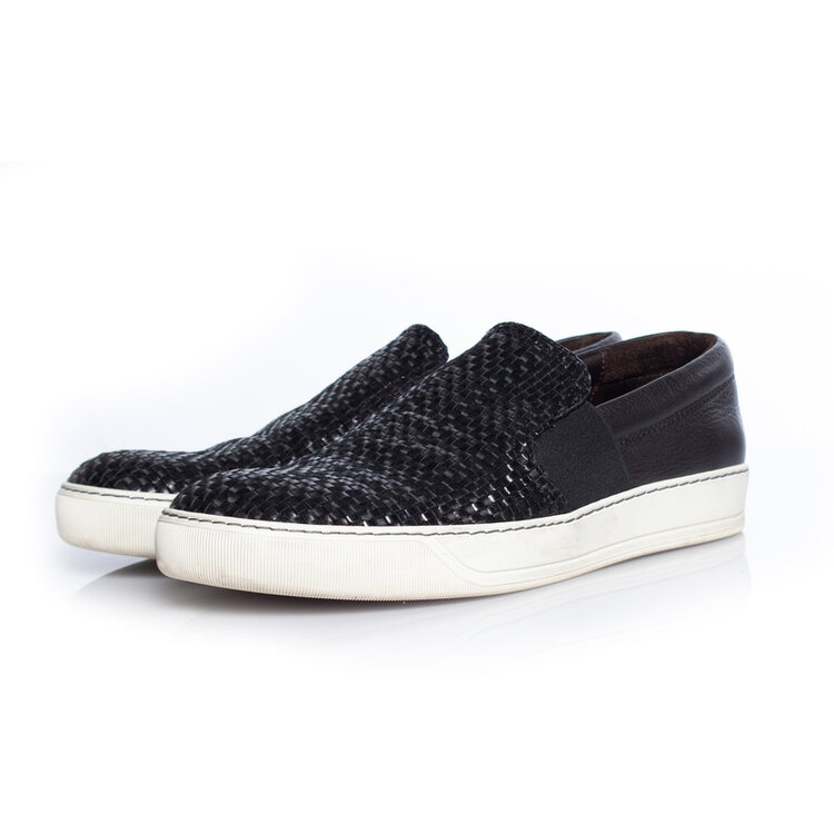 • Lanvin, geweven lederen instapsneaker in zwart. Het artikel is in zeer goede staat.