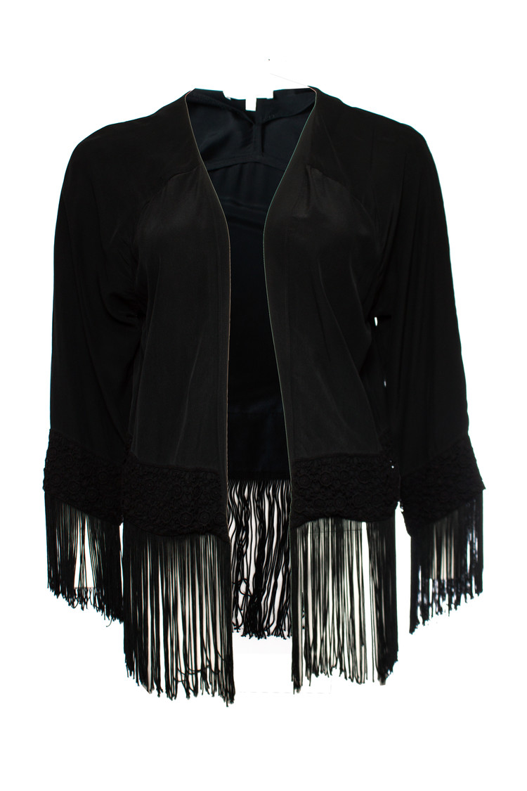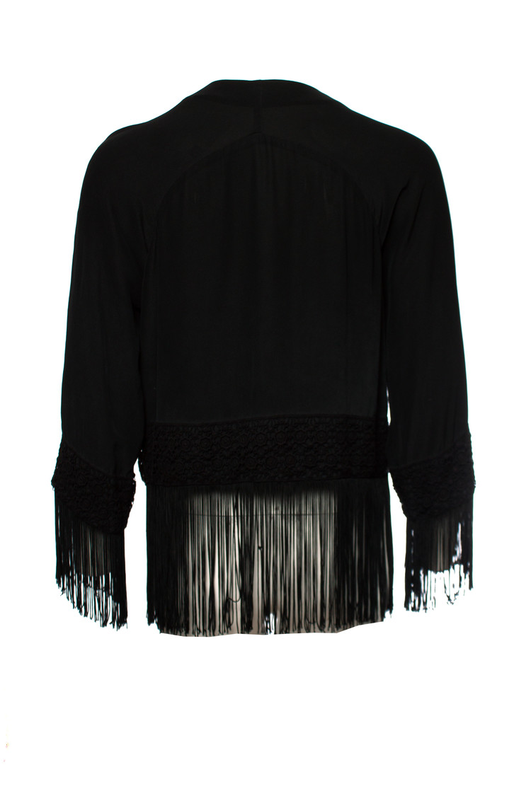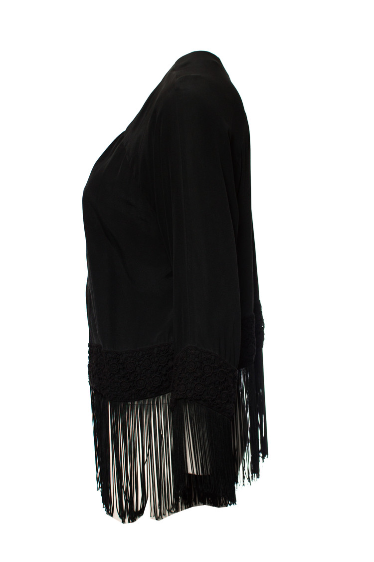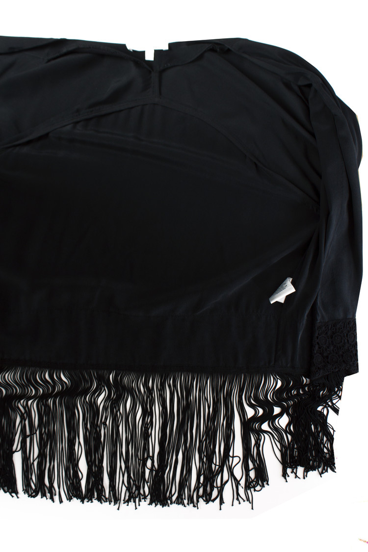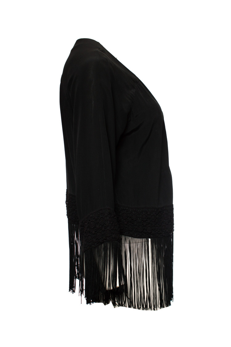 • AFMETINGEN: lengte (47 cm zonder franjes)/66 cm, breedte 43 cm, taille 42 cm, schouder breedte 47 cm, arm lengte 55 cm