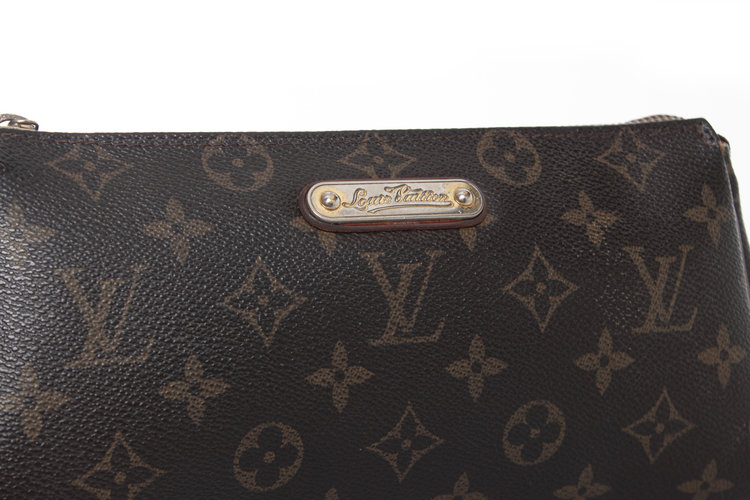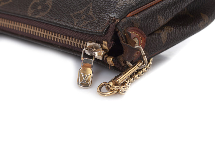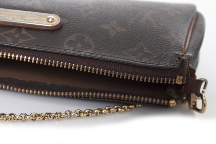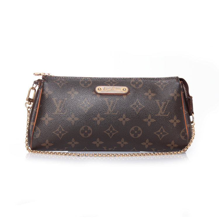 Louis Vuitton, Eva clutch in monogram canvas. De rits van dit item is vervangen en het item vertoont gebruikssporen op de hardware. Goud is er gedeeltelijk af. Binnenkant van de tas is in nette goede staat. Het item komt met de originele doos.