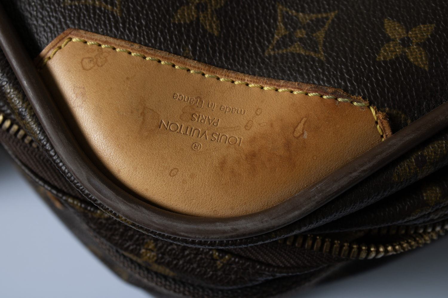 • Louis Vuitton, Monogram canvas satellietkoffer. Binnenzijde is in nette staat. Buitenzijde heeft wat gebruikssporen. Het leer heeft wat vlekken en het canvas is wat uitgedroogd. De rubberen voetjes hebben wat scheurtjes.