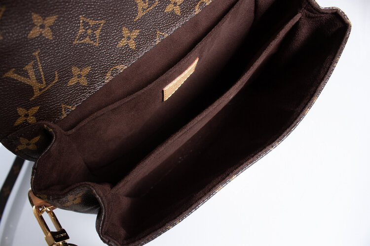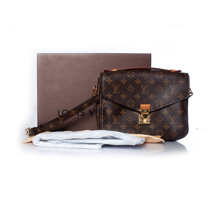 Louis Vuitton, Pochette Metis in canvas met monogram. Exterieur en interieur zijn in uitstekende staat alleen de hardware heeft wat kleine gebruikerssporen. Wordt geleverd met doos en dustbag.