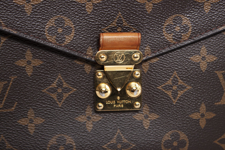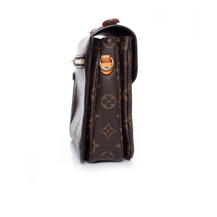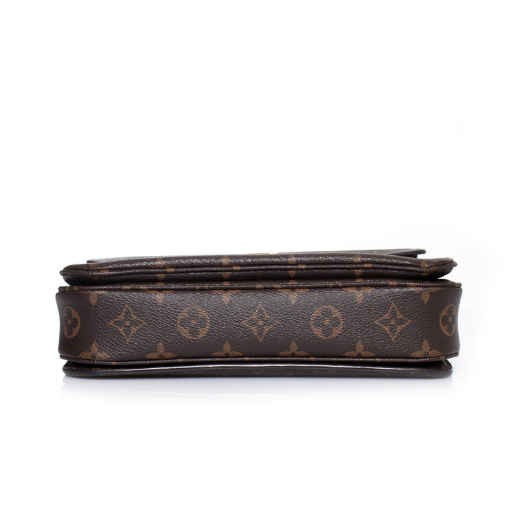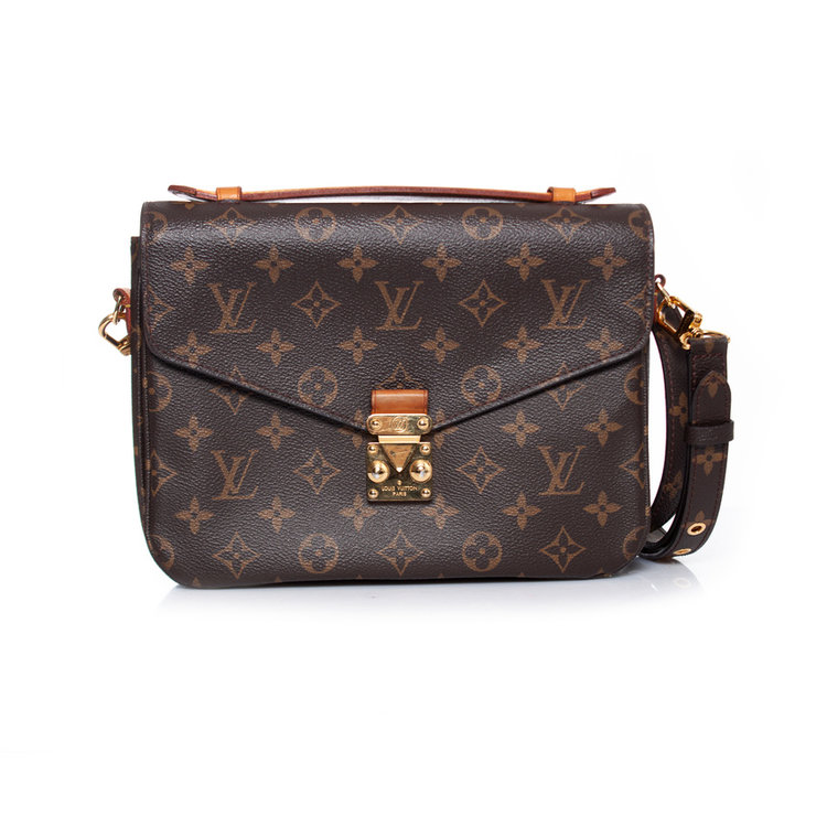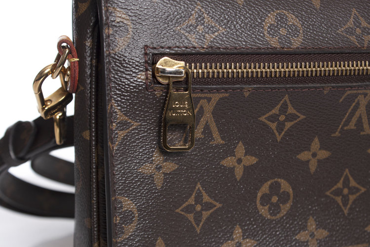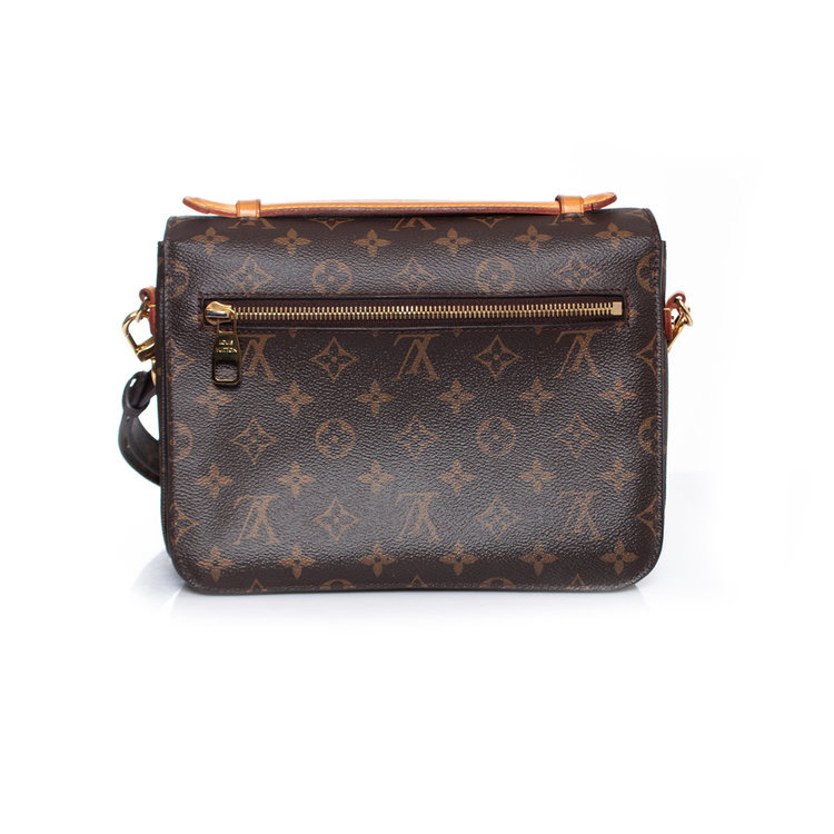 Louis Vuitton, Pochette Metis in canvas met monogram. Dit item is in goede staat met wat slijtage aan het voorslot en leer. Het interieur van het item en de hoeken zijn allemaal in zeer goede staat. Vachettaleer is mooi bruin geworden.