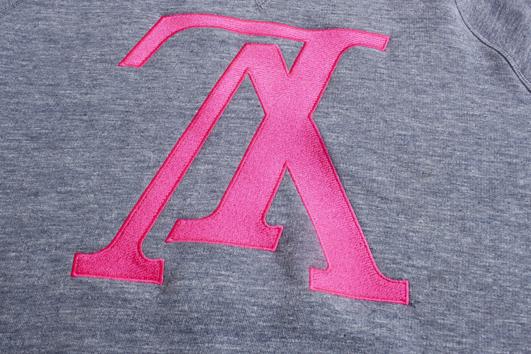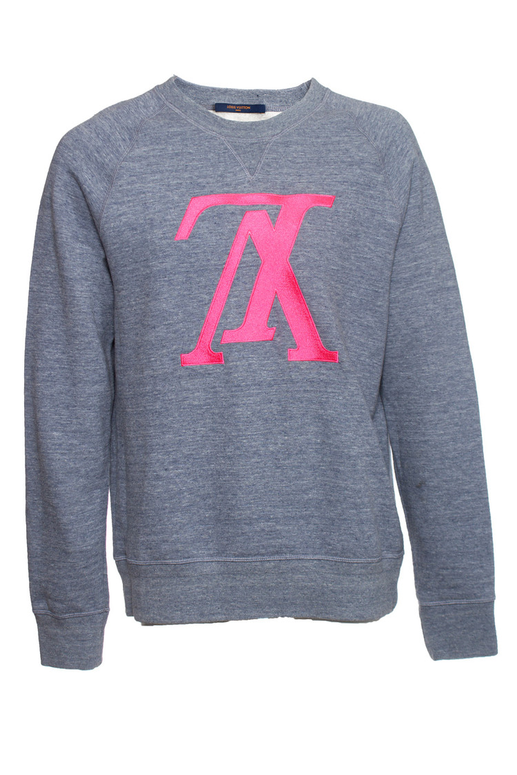 • Louis Vuitton, ronde hals trui met neon roze logo. Het artikel is in goede staat.