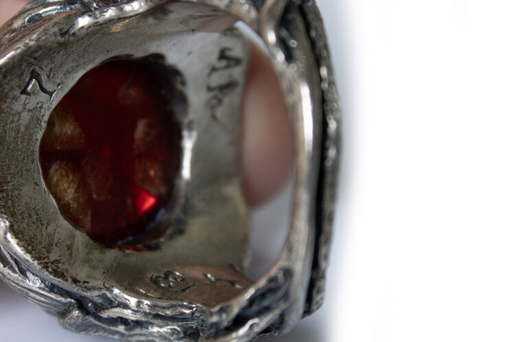 AFMETINGEN: diameter binnenzijde 2,1 cm, diameter buitenzijde 2,8 cm, hoogte ring 2,5 cm