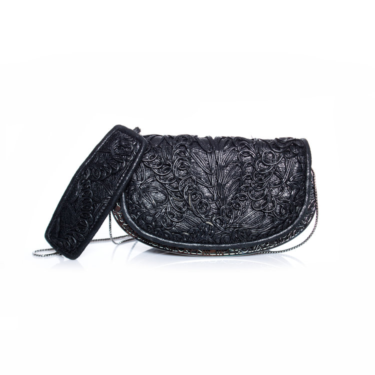 • Maison Du Posh, zwarte handgemaakte lederen schoudertas met zilveren hardware. Dit product is helemaal nieuw en wordt geleverd met een stofzak.