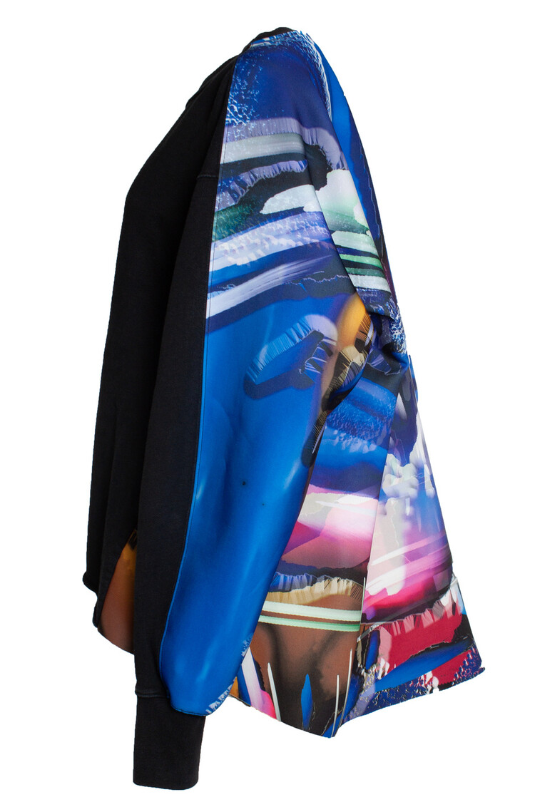 AFMETINGEN: lengte 75 cm, breedte 58 cm, taille 75 cm, schouderbreedte 50 cm, mouwlengte 69 cm