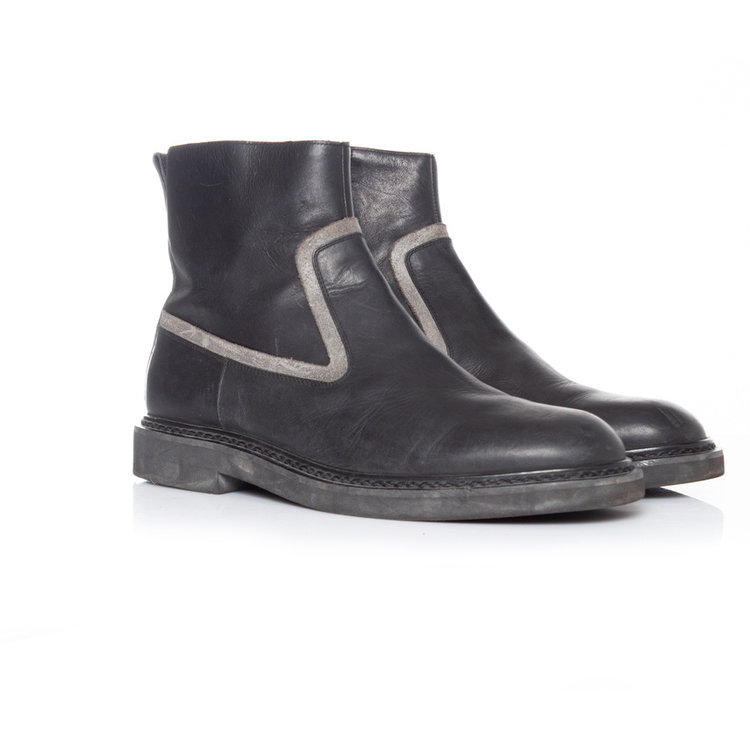 • Maison Martin Margiela, Antracietkleurige leren enkellaarzen. Het item is in goede staat.