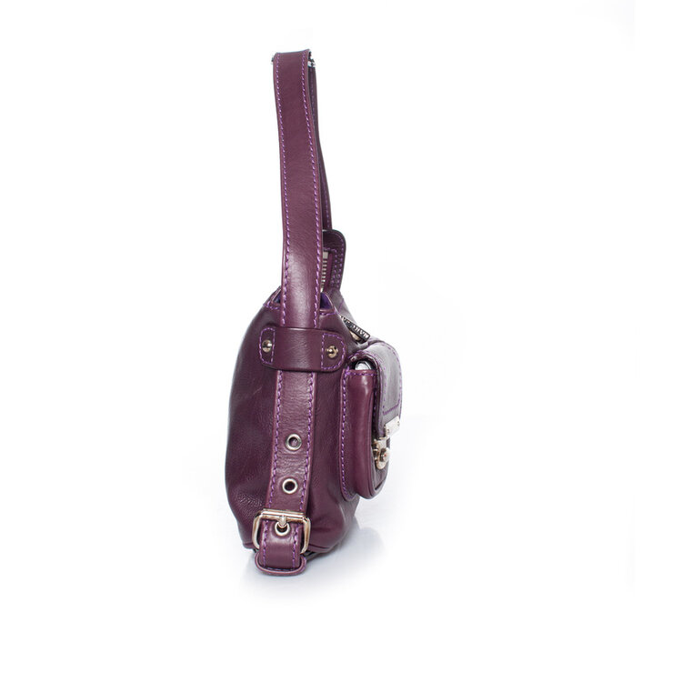 • Marc Jacobs, paars leren handtas met gespen en zakken. Het item is nieuw - ongedragen maar heeft wat kleine krasjes van het opbergen van de tas.