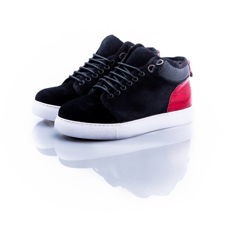 Mason Garments, Coach grant high. Zwarte sneaker in pony skin met witte zool en rode accenten. Het product is helemaal nieuw en komt in originele verpakking.