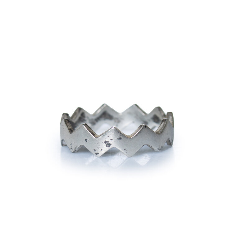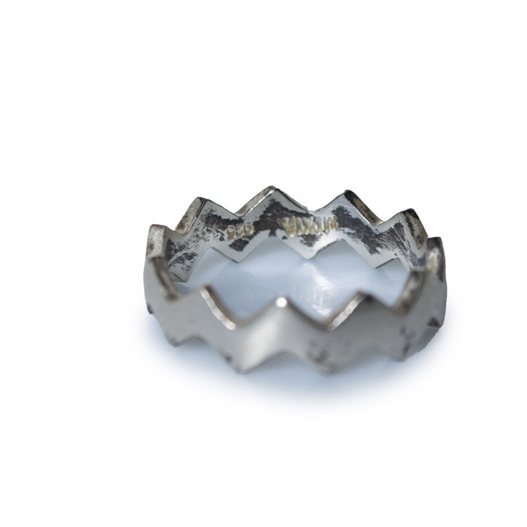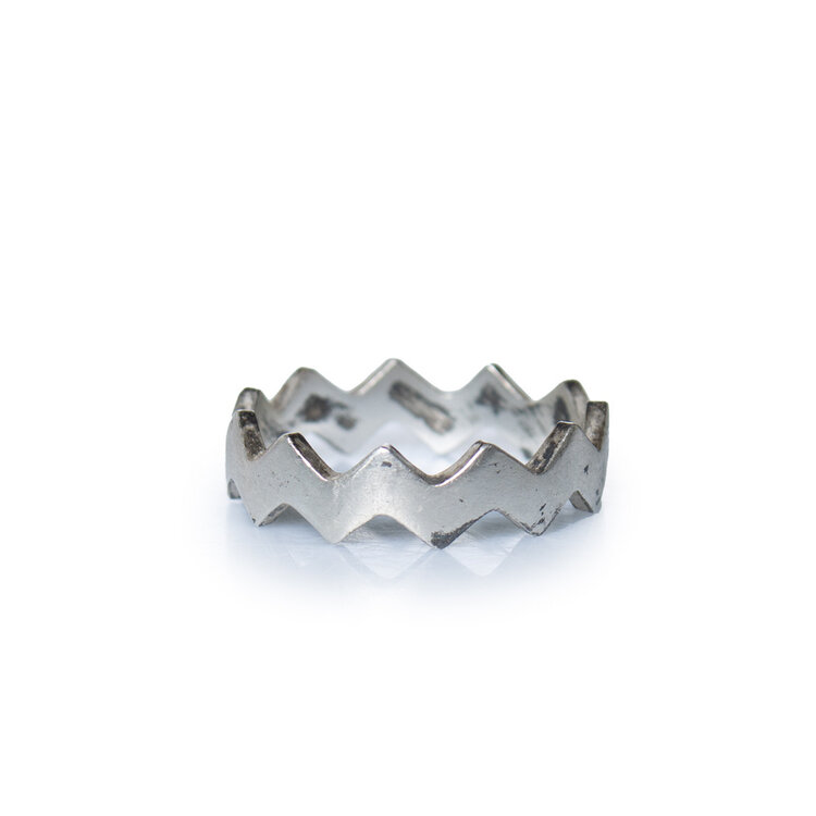 • Mikia, zilveren zigzagring. Het artikel verkeert in zeer goede staat.