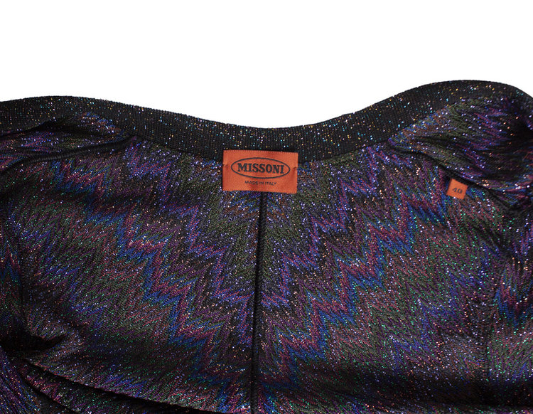 • Missoni, multikleurig paars lurex vest met knoopjes. Het item verkeert in een zeer goede staat.