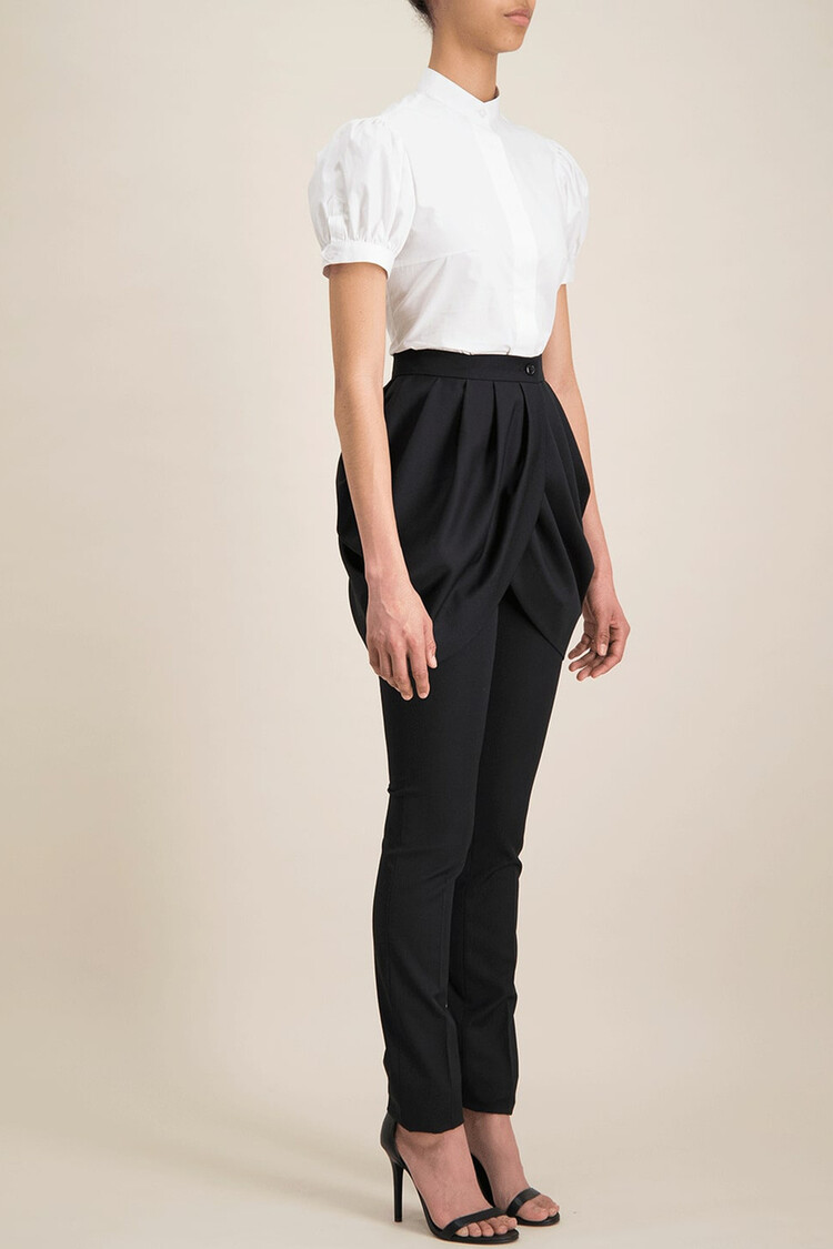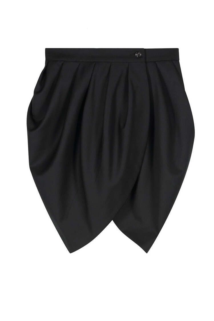 Gedrapeerde gaberdine rok in zwart met een gekruist design en een knoopsluiting voor een stijlvolle touch.