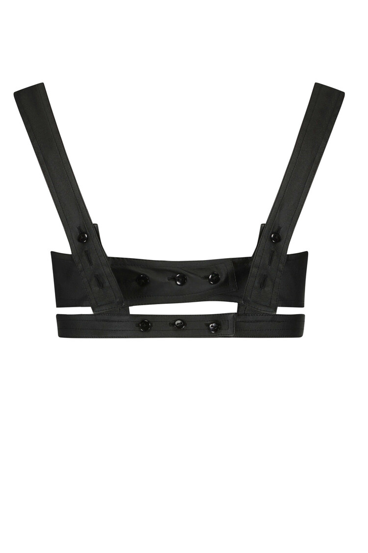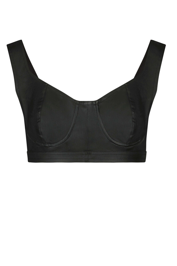Deze luxe zwarte kunstleren bralette, met zijn onweerstaanbaar zachte textuur, mag niet ontbreken in je garderobe! Met zijn zorgvuldig op maat gemaakte bustier, een charmante hartvormige halslijn en brede bandjes straalt hij een krachtige vrouwelijke allure uit. Het knoopsluitingssysteem aan de achterkant biedt veelzijdigheid voor speelse styling, waardoor verschillende chique looks mogelijk zijn. Ontworpen voor gemak, zorgt het voor een optimale pasvorm afgestemd op uw individualistische lichaamstype.