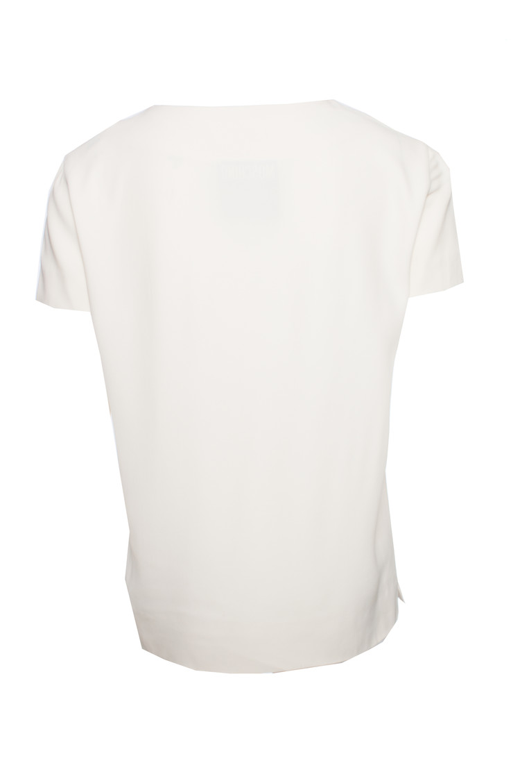 • Moschino Couture, Roomkleurige top met gouden text in maat IT42/S. Het item is 1x gedragen en is in goede conditie.