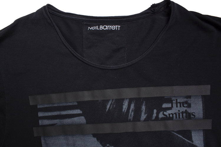 • Neil Barett, Zwart T-shirt met print. Het artikel is in goede staat.