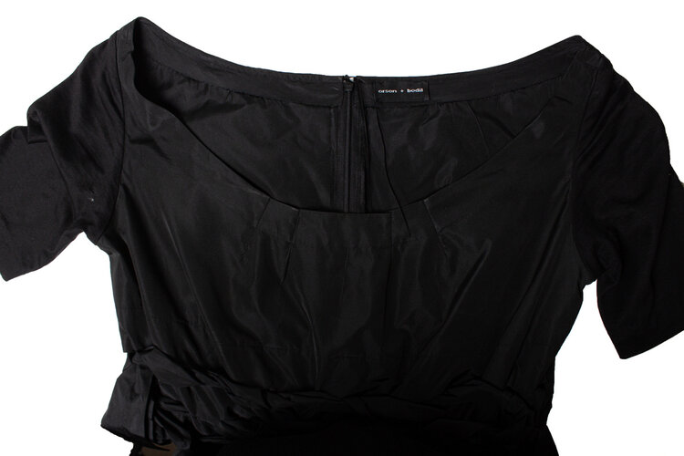 AFMETINGEN: lengte 92 cm, buste 44 cm, taille 36 cm, schouderbreedte 45 cm, mouwlengte 20 cm