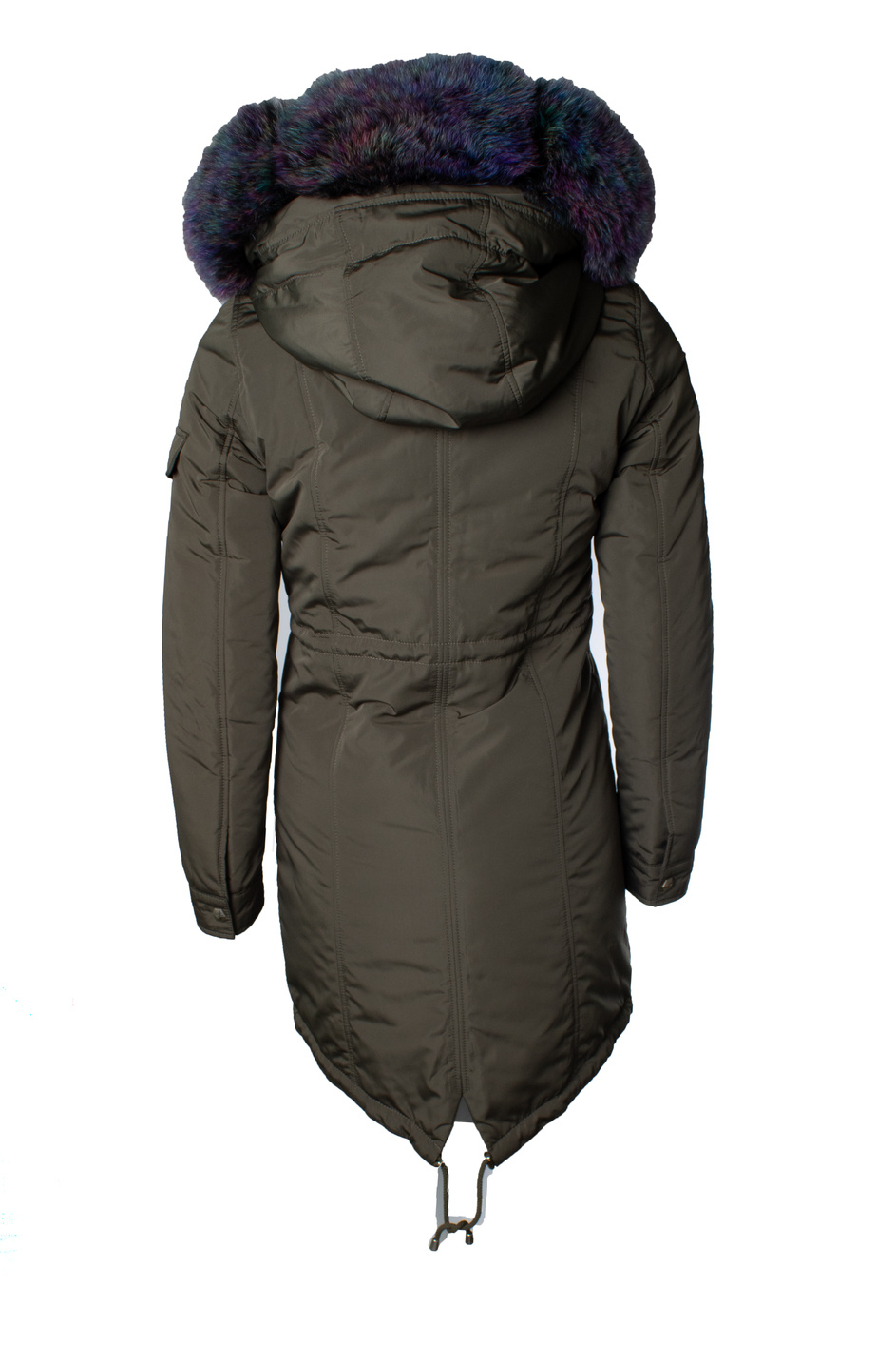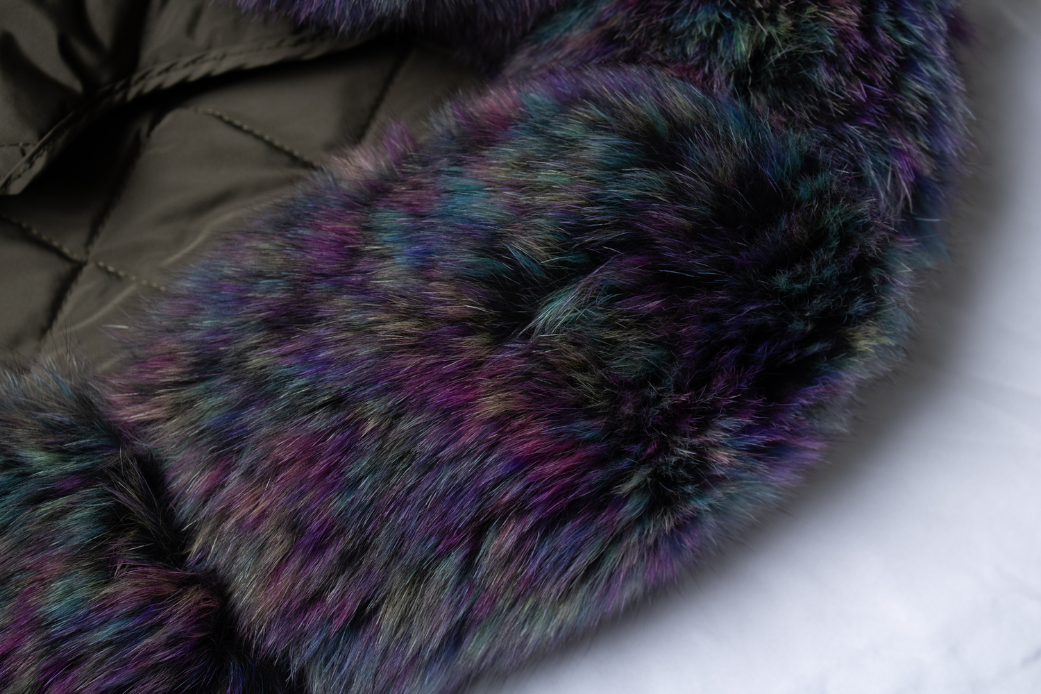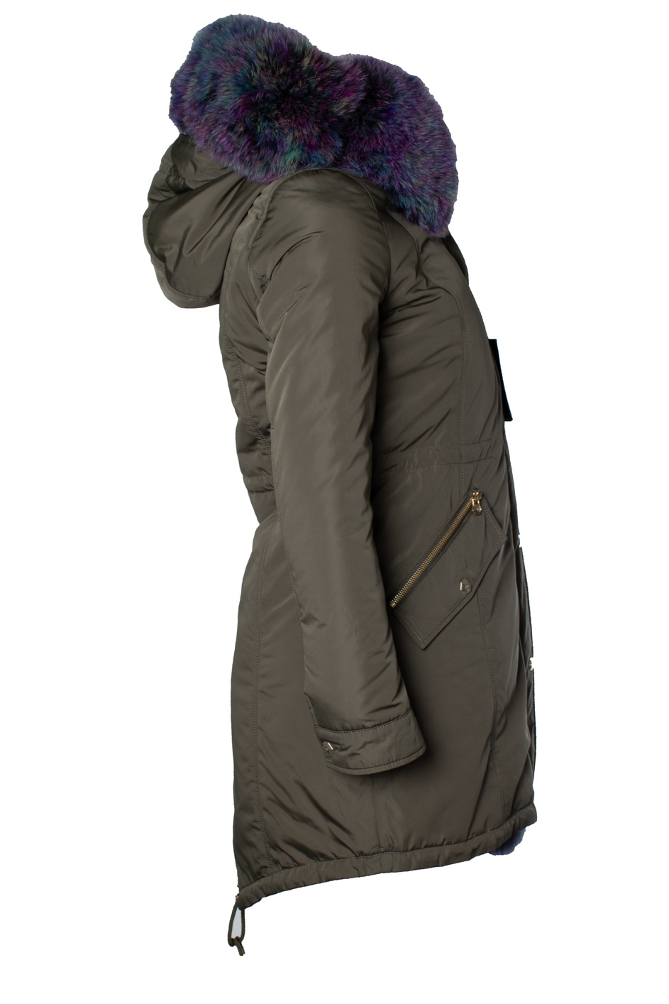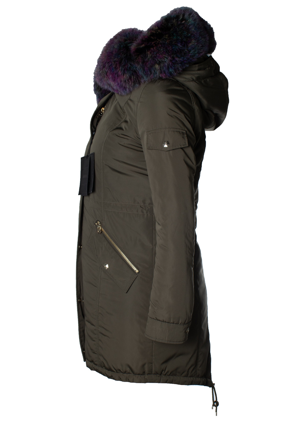 • Philipp Plein, groene bontparka met capuchon en uitneembare voering. Het artikel is nieuw met label.