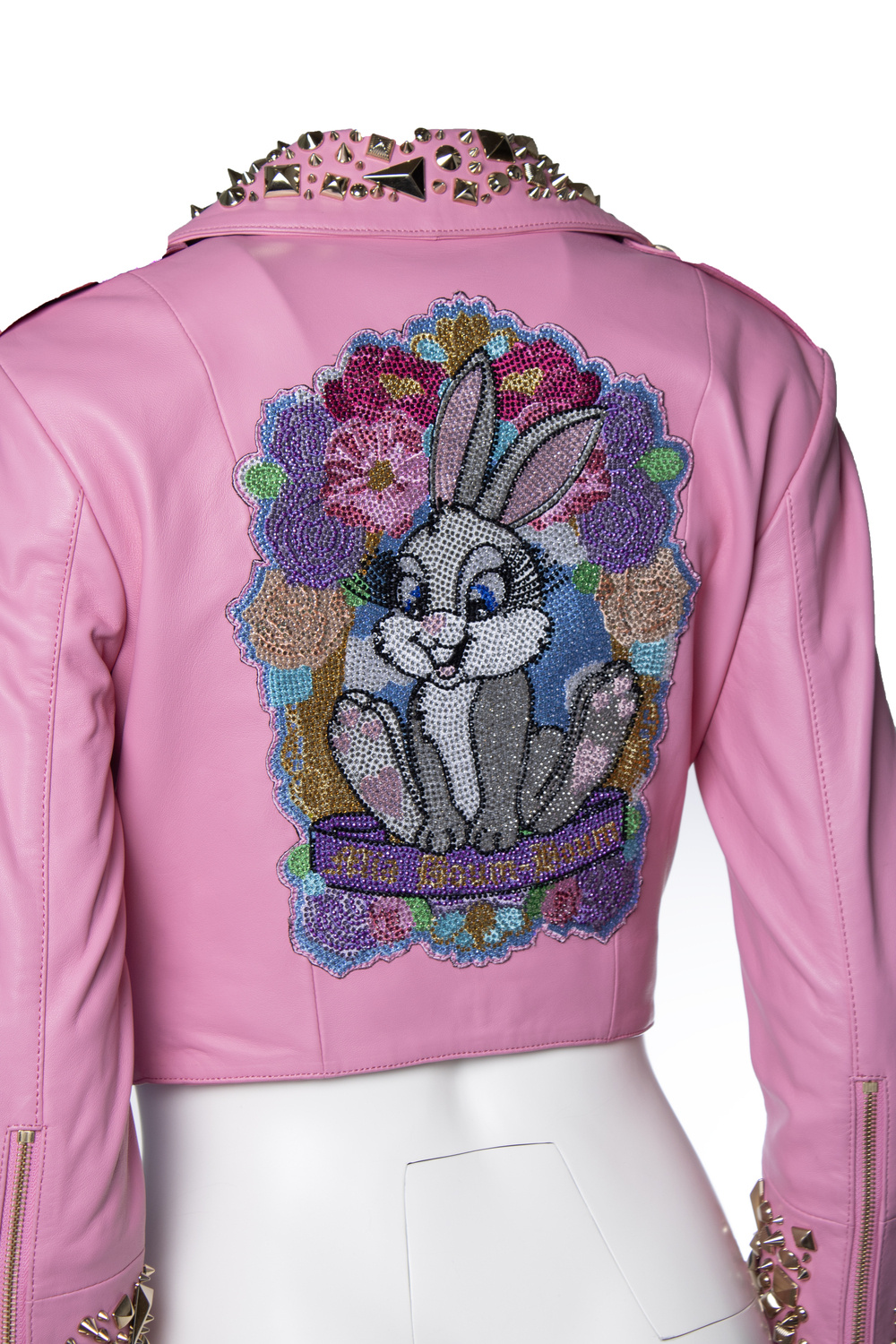 Philipp Plein, Roze Disney cropped leren biker