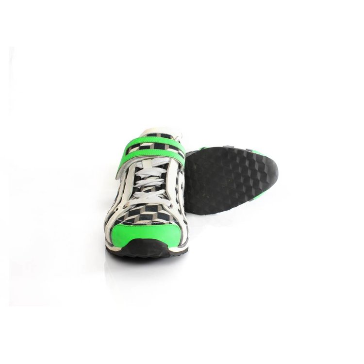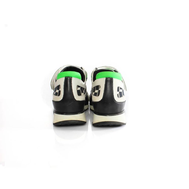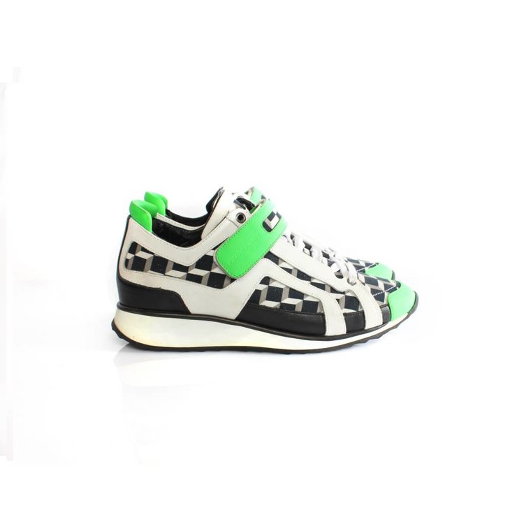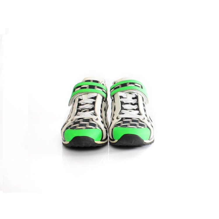Pierre Hardy, fluorescerende geometrische groen/zwart/witte, canvas/leer sneakers in maat 38. Het product is in top conditie en maar één keer gedragen.