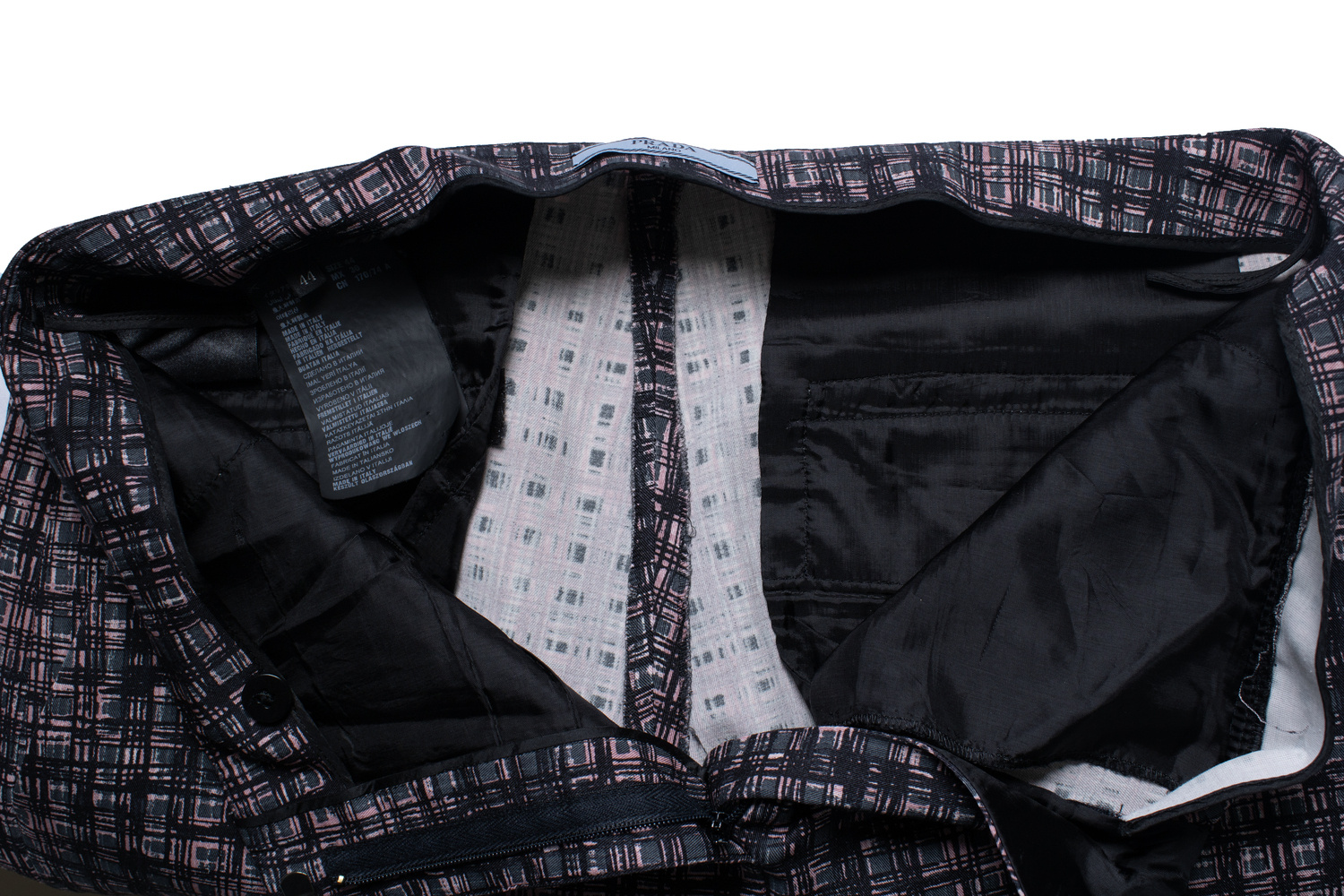 • Prada, groene en roze pantalon met grafische print. Het artikel verkeert in zeer goede staat.