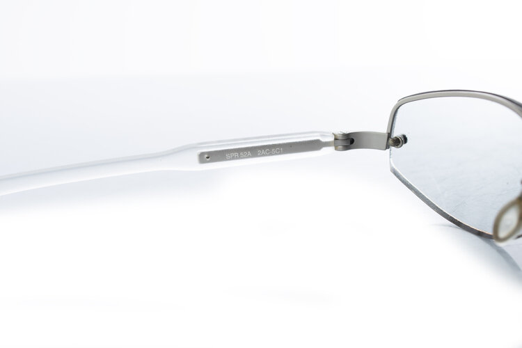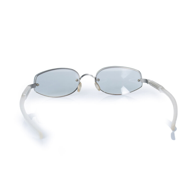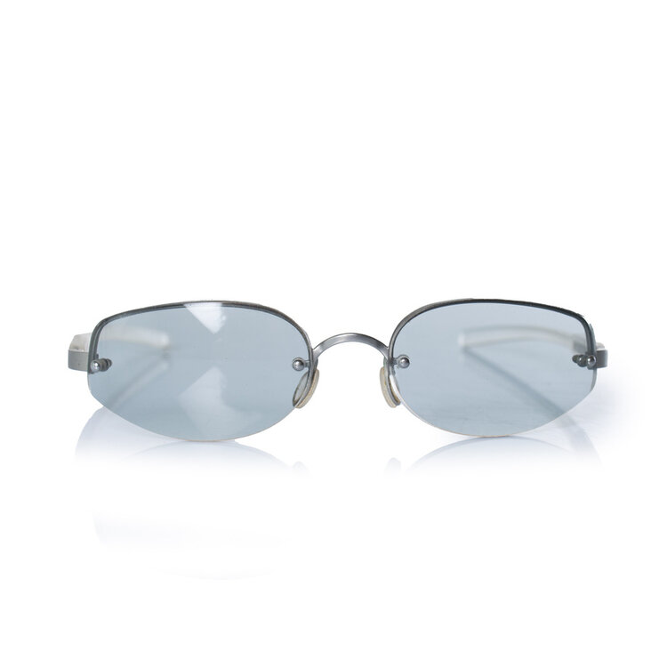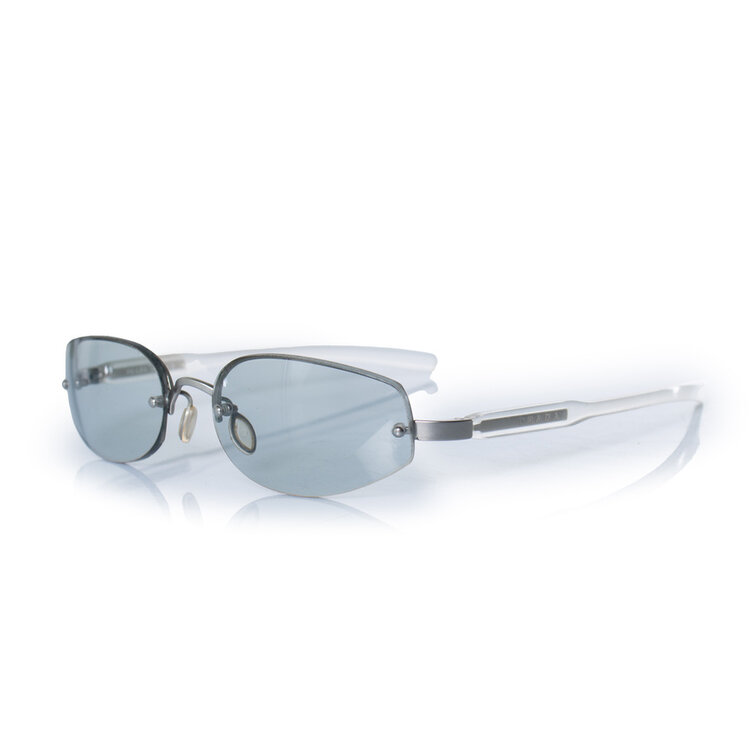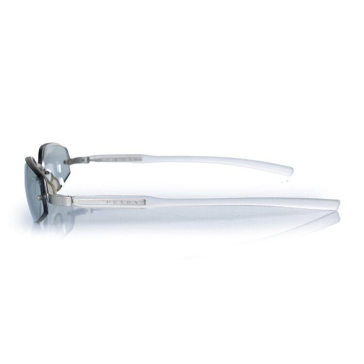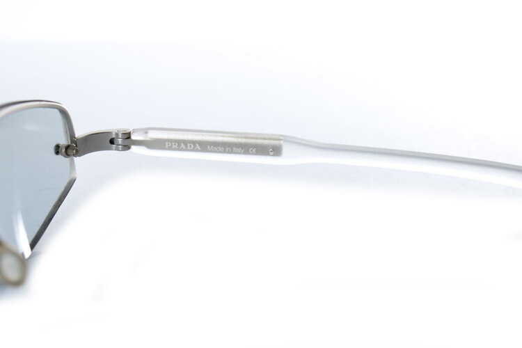 • Prada, montuurloze zonnebril van metaal en kunststof. Het artikel verkeert in goede staat.