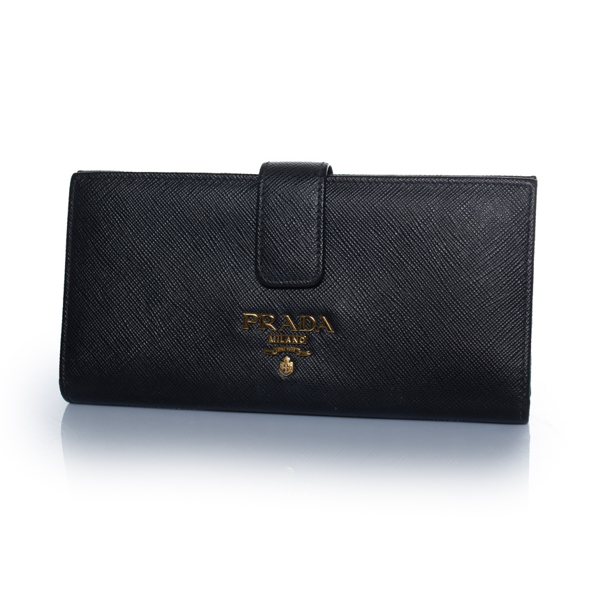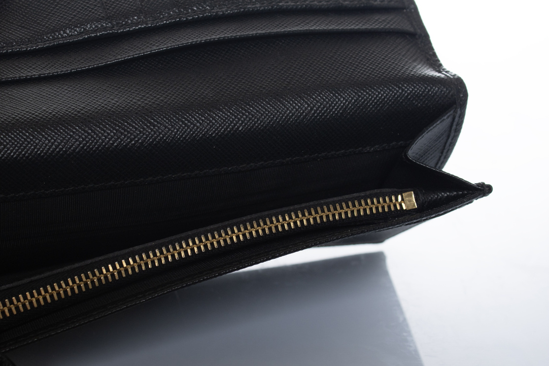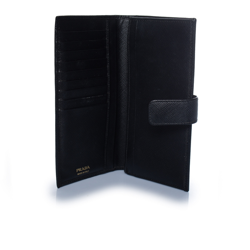 Prada, portemonnee van zwart saffianoleer
