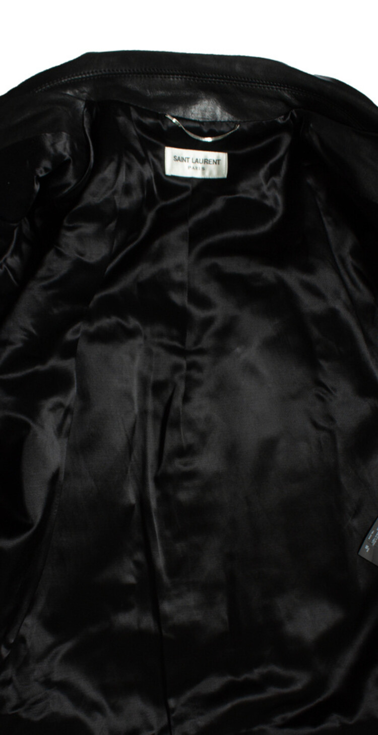 • Saint Laurent, AW 2014 leren bikerjack met luipaardprint. Het artikel verkeert in zeer goede staat. Zeer klein kaal plekje op de rug.