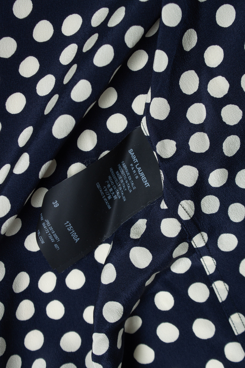 • Saint Laurent, Blauw-wit overhemd met stippen, 2019. Het artikel verkeert in goede staat. De laatste knoop is gebroken, maar is niet zichtbaar bij het dragen.
