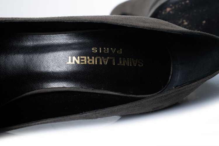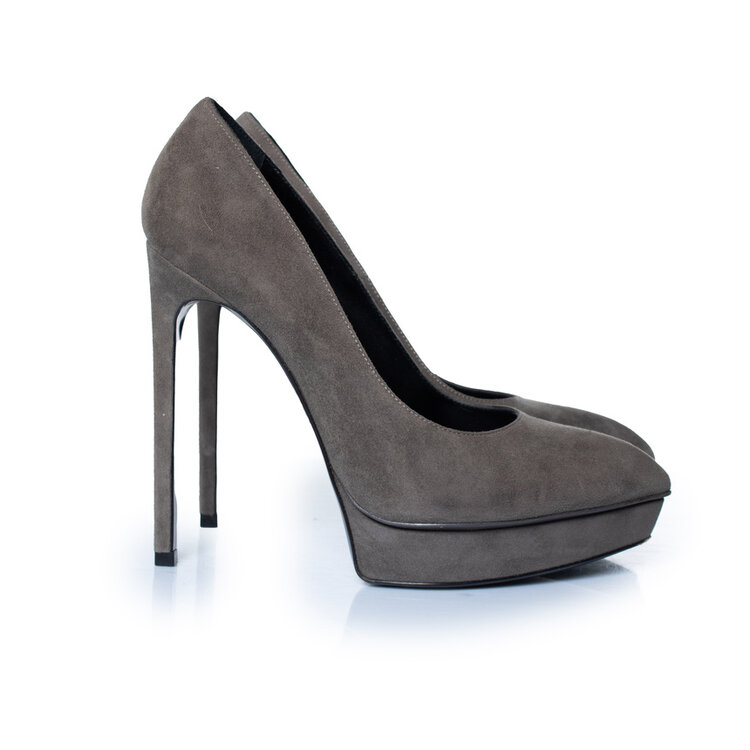 • Saint Laurent, Grijze suède janis pump. Het artikel verkeert in zeer goede staat.