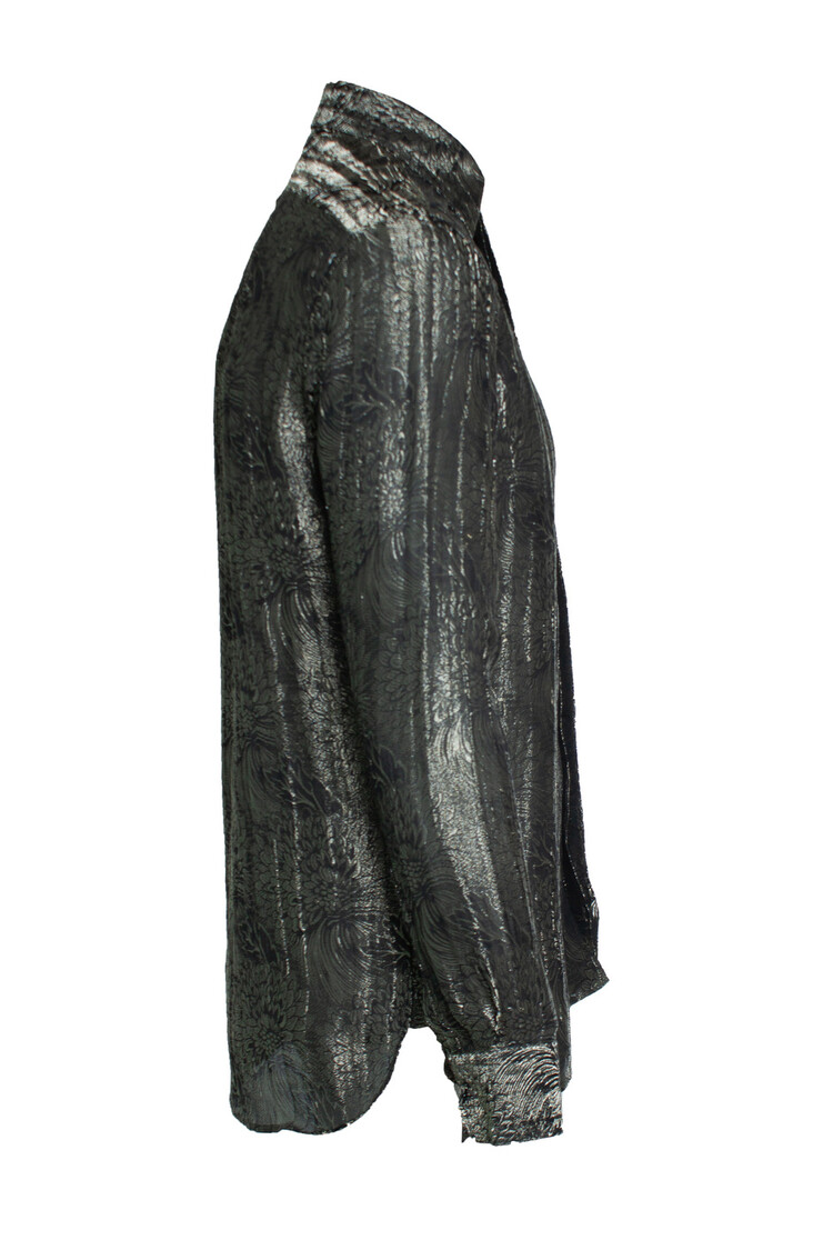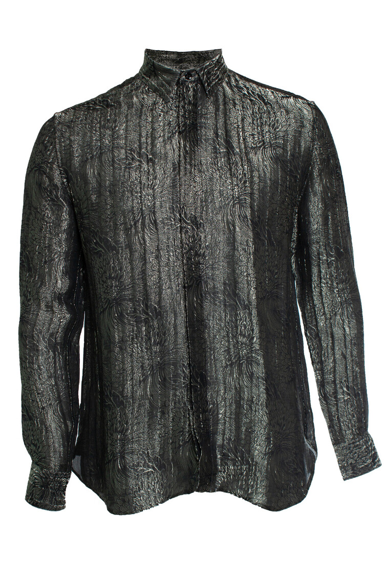 • Saint Laurent, Jacquardgeweven overhemd in zwart en goud met bloemenprint, 2018. Het artikel verkeert in zeer goede staat.