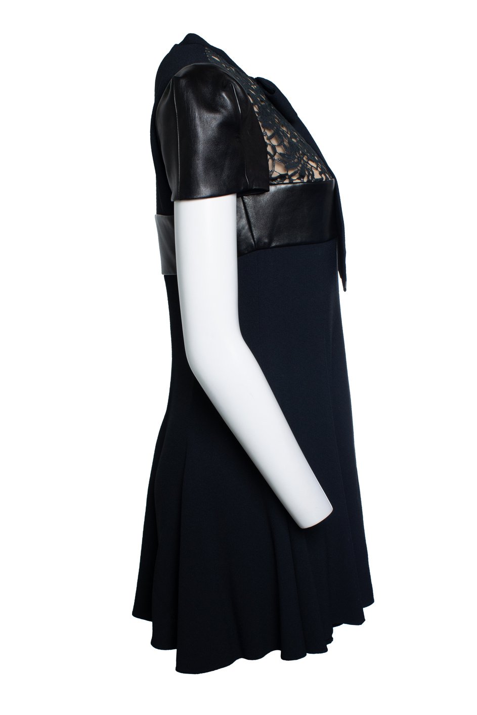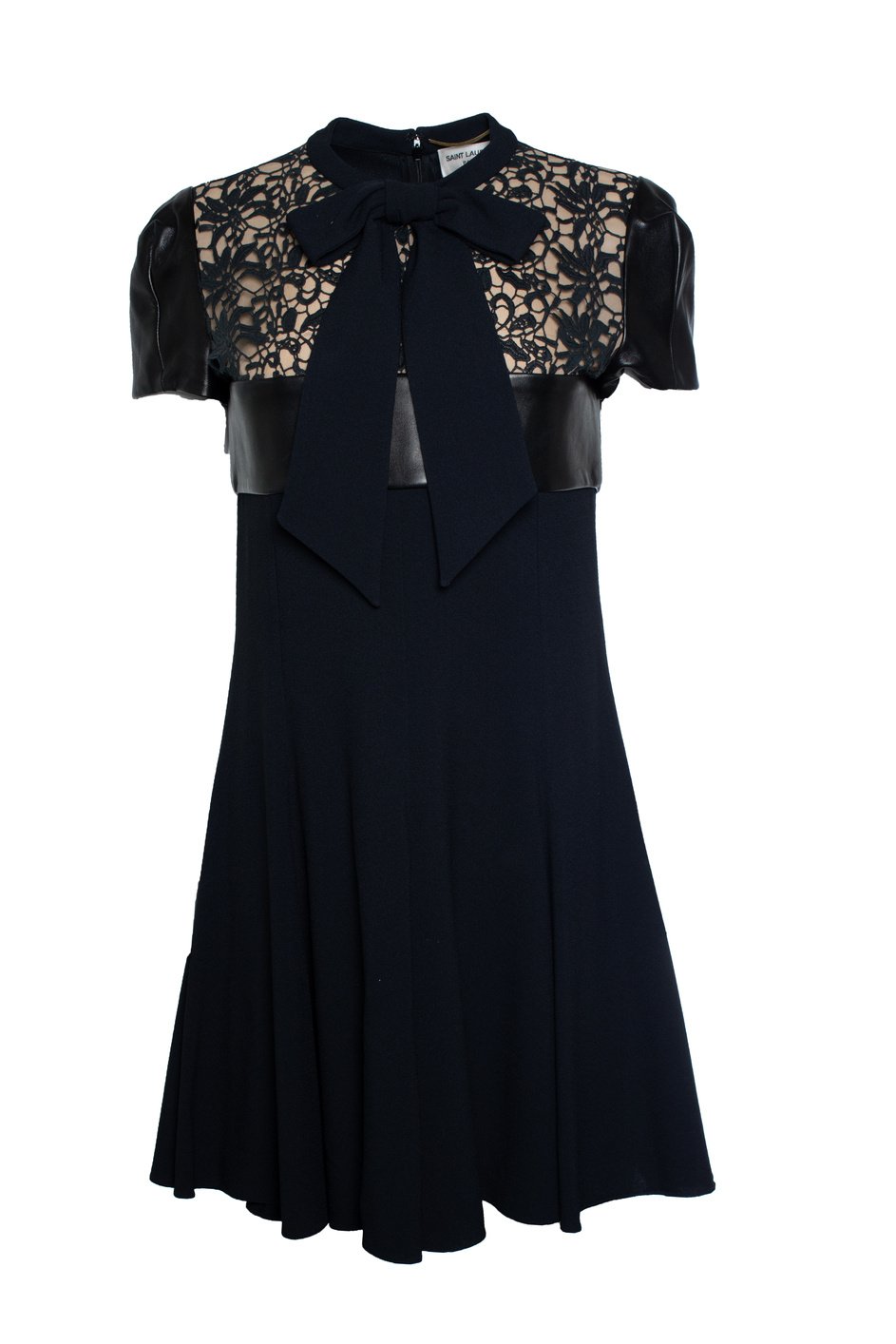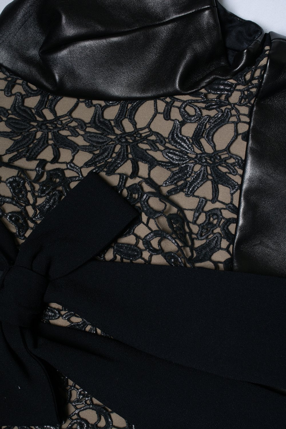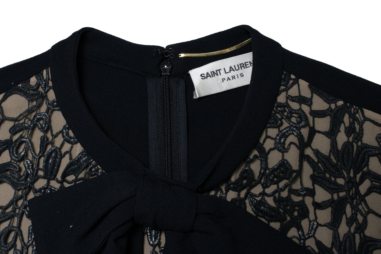 • Saint Laurent, jurk met leren afwerking en kanten paneel in zwart, 2012. Het artikel verkeert in zeer goede staat.