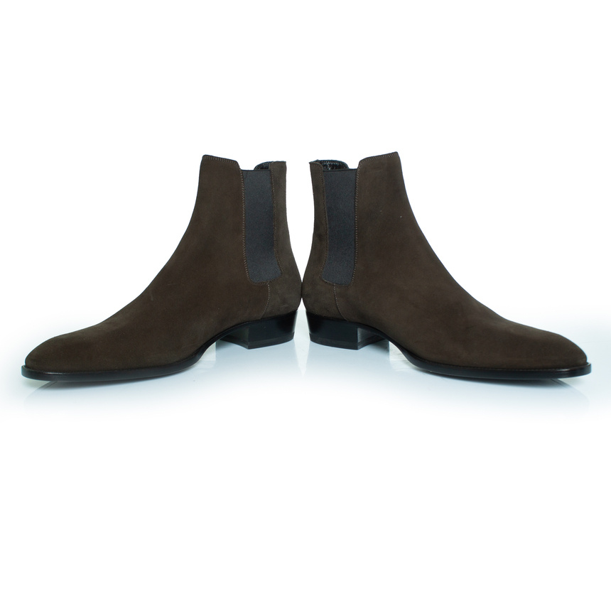 Saint Laurent, kaki suède Chelsea enkellaarzen