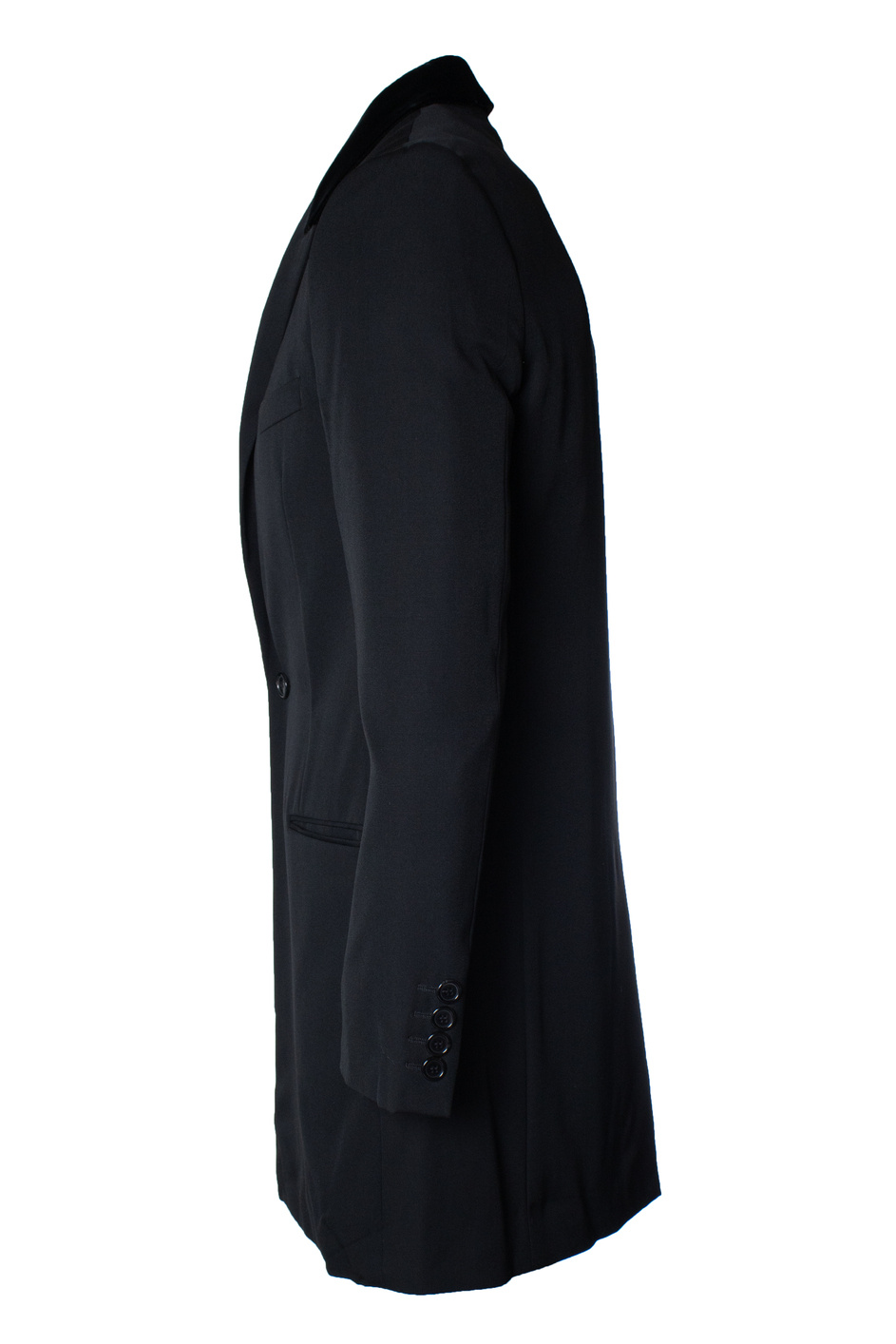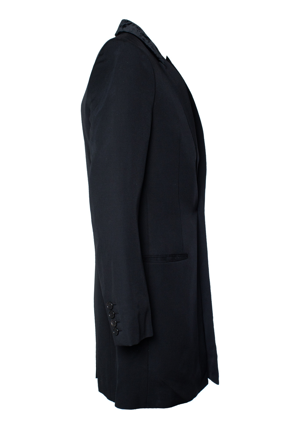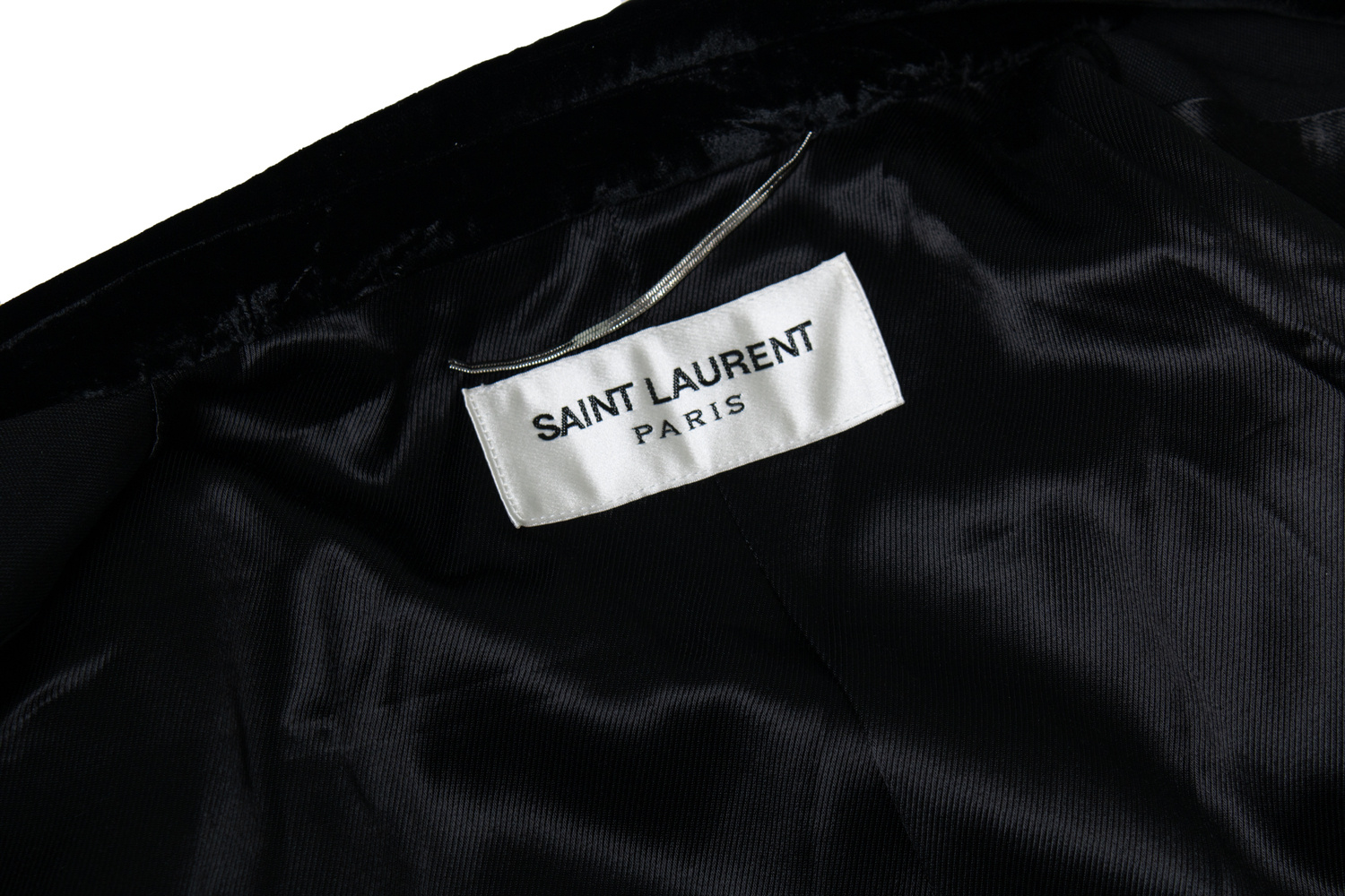 • Saint Laurent, Zwarte lange blazer met fluwelen revert 2017. Het artikel verkeert in zeer goede staat.