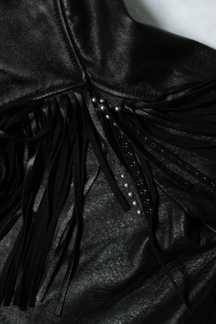 • Saint Laurent, leren jack met franjes uit 2015. Het artikel verkeert in zeer goede staat.