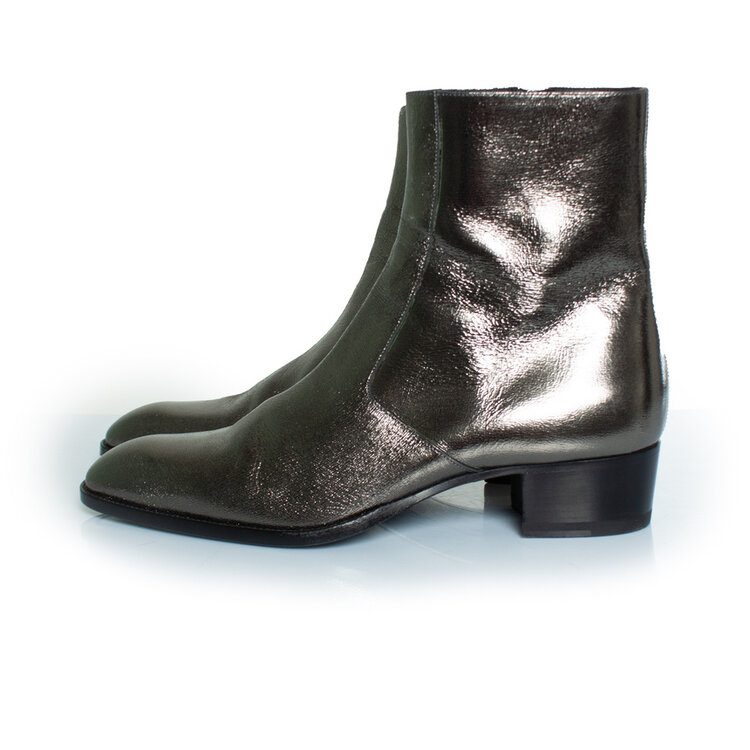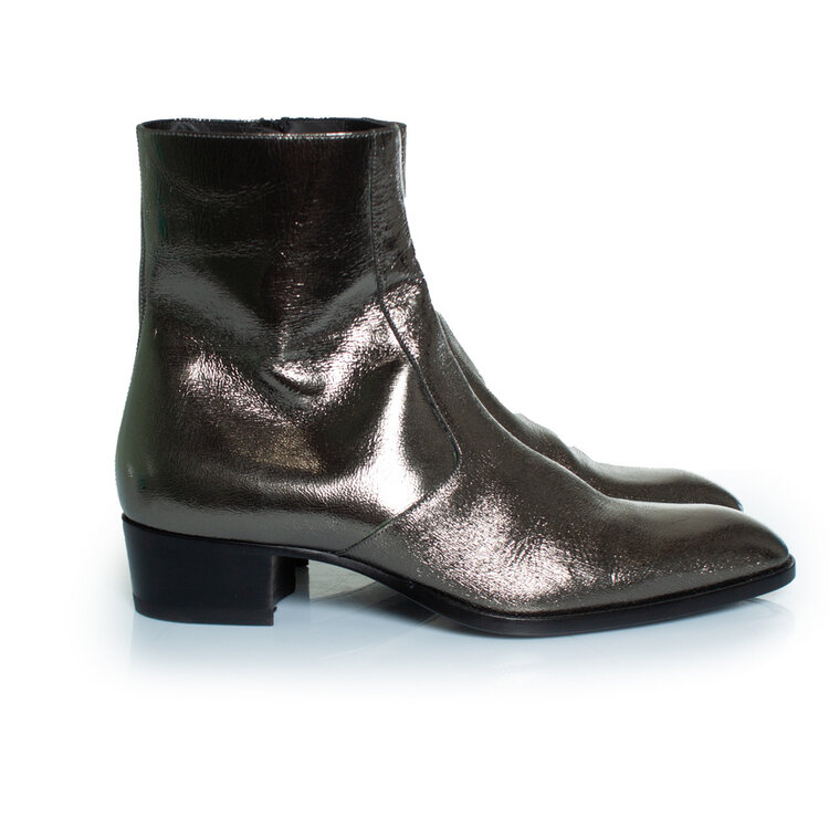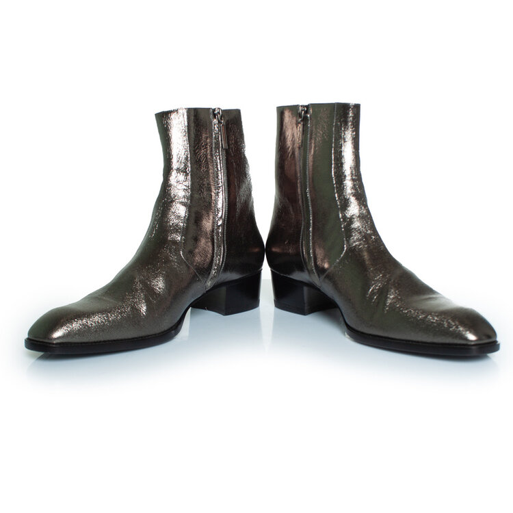 • Saint Laurent, metallic zilveren Wyatt-laarzen. Het artikel verkeert in zeer goede staat.