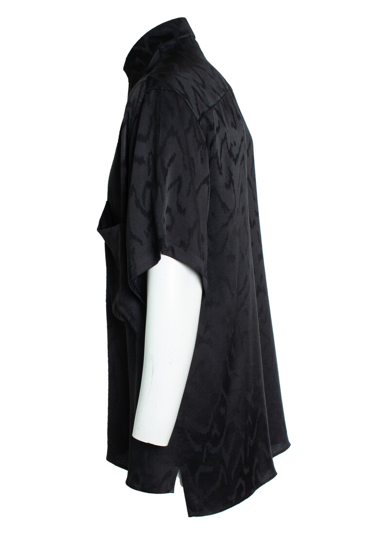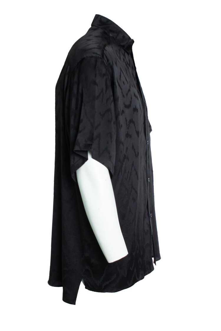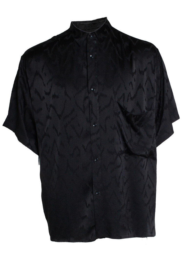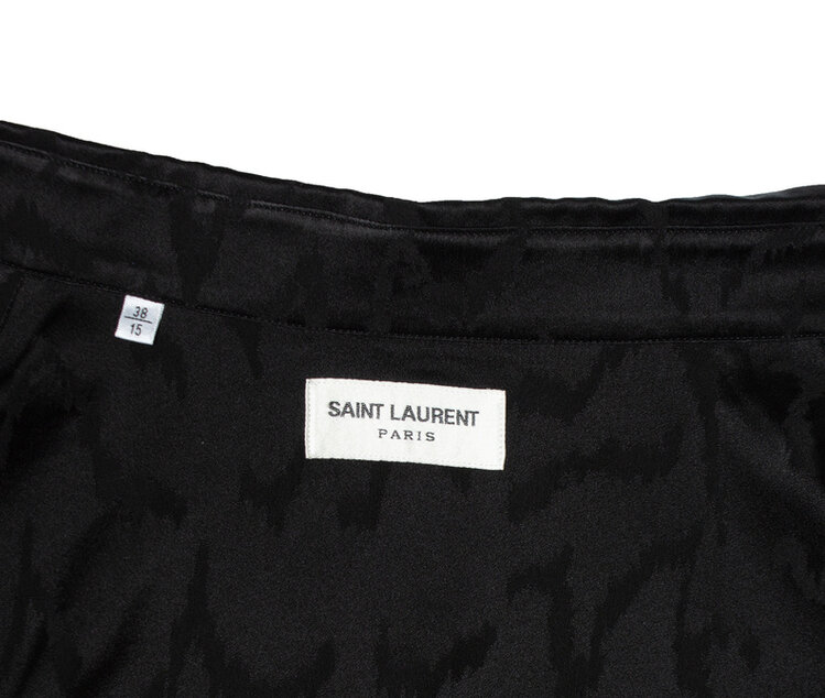 • Saint Laurent, satijnen overhemd met korte mouwen en zigzagprint en luipaardprint in zwart, 2022. Het artikel verkeert in zeer goede staat.