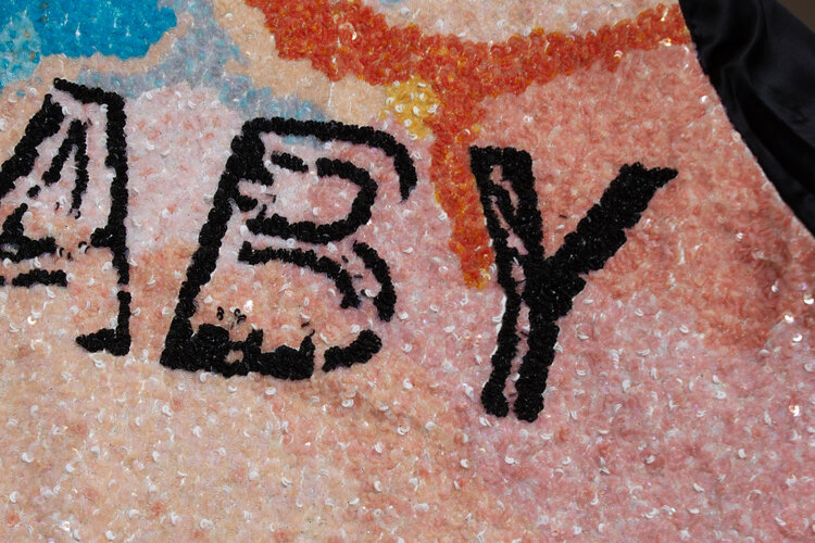 • Saint Laurent, zwart baby bomberjack met pailletten. Het artikel verkeert in zeer goede staat